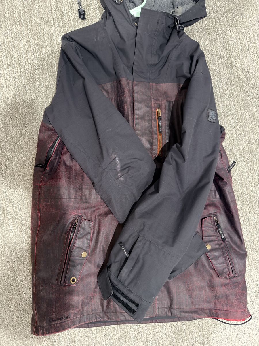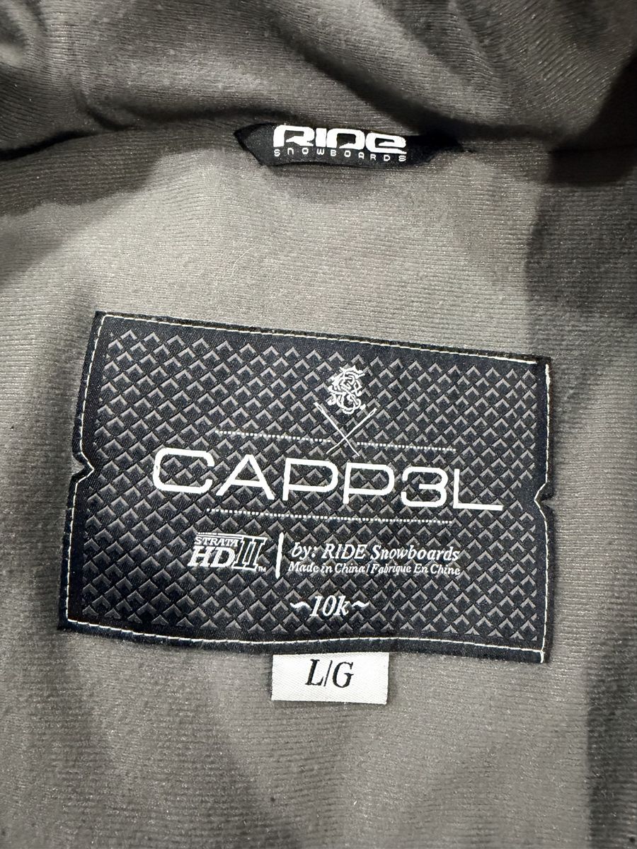 VenmoOne of my fav jackets of all time. Men's jacket size large for ski or snowboarding. 10k waterproof Cappel is Ride Snowboard's premium line and this jacket is comfy n rad. Has some normal wear but is fully functional and ready for the slopes! Retail is well over $250 so this is a steal!