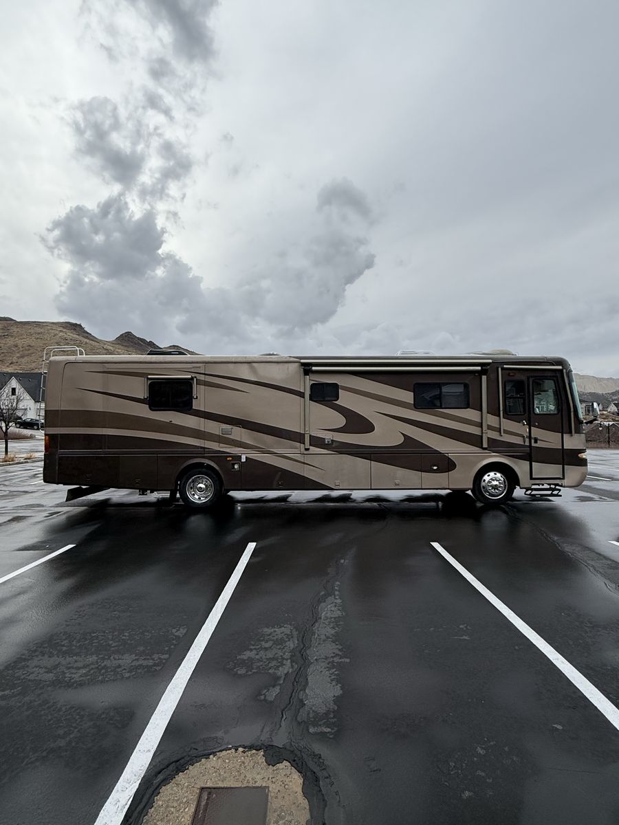 2004 Monaco Diplomat 40ft. Cummins ISL 330 horsepower diesel, Allison six-speed, 160,000 miles Eight-kW Onan diesel gen-set, auto-levelers, backup camera—runs like she rolled off the line yesterday. 90 gallon fresh, 60 gray, 40 black. Fresh service, new tires, no leaks. Forty-one feet of pure American iron. Make an offer.