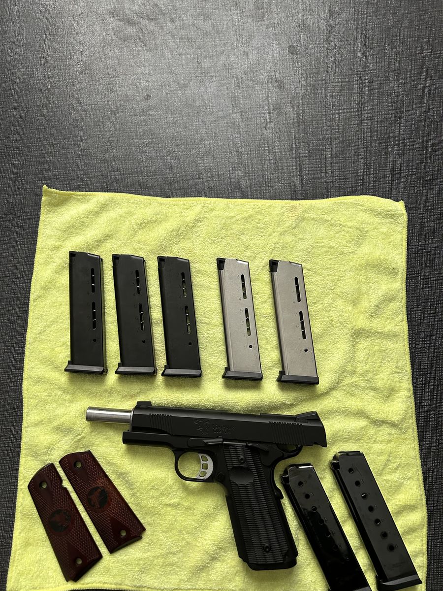 Purchased new, original owner. Has only approximately 50 rounds fired. Comes with custom grips and extra Wilson Combat magazines. Firearm only retails for $4199.00