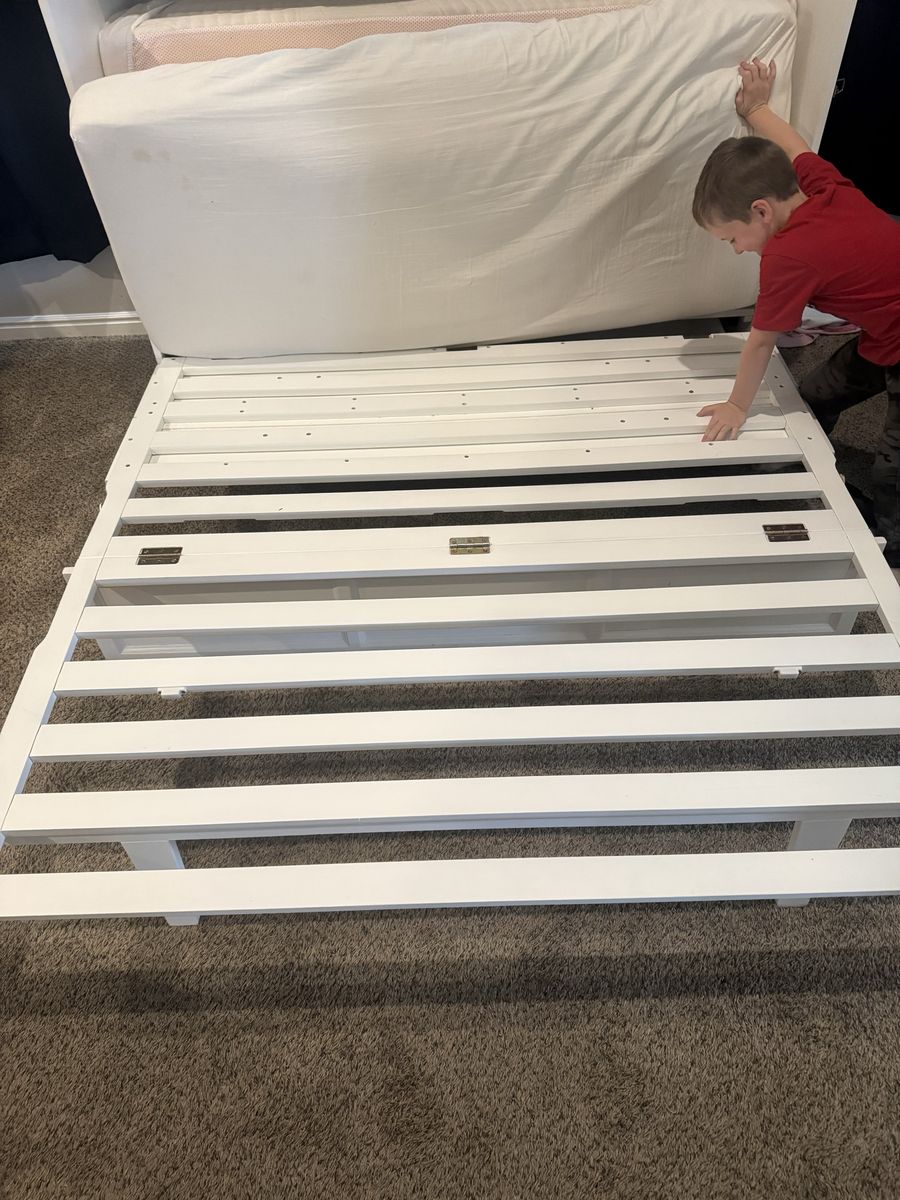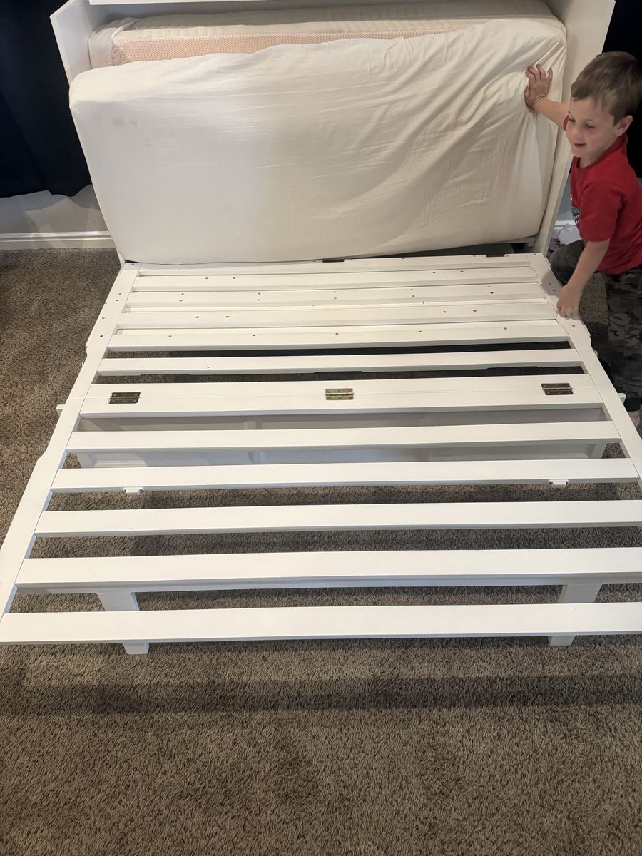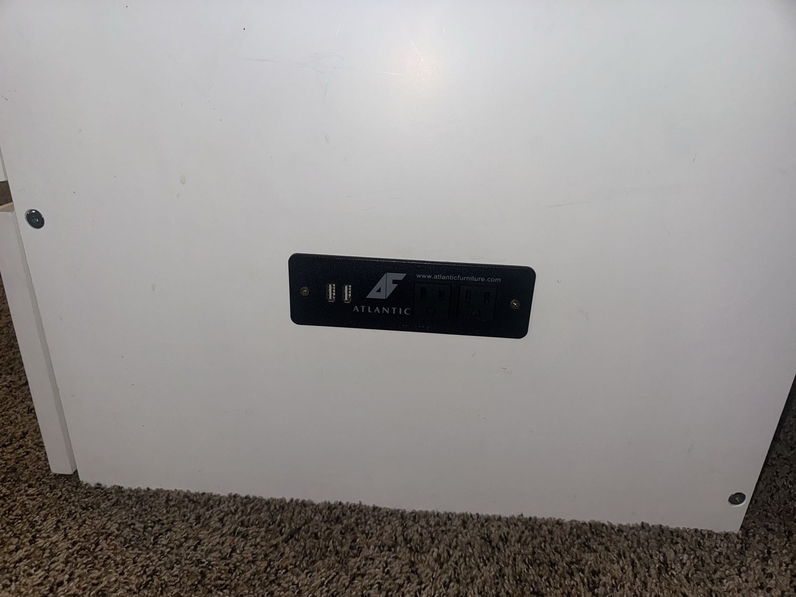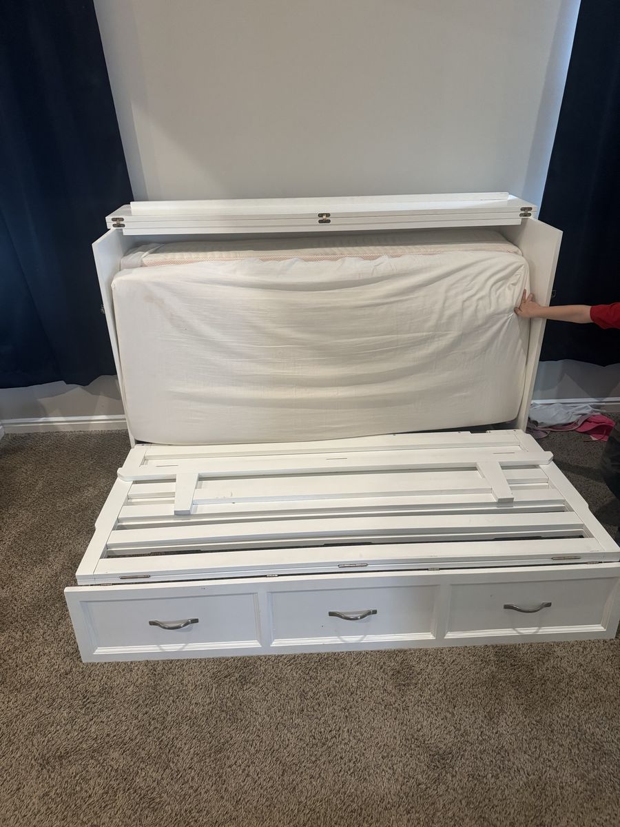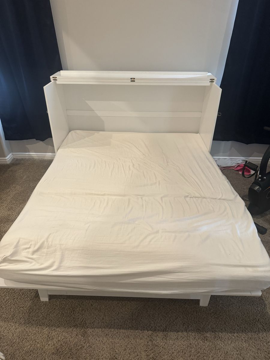Atlantic Fine Furniture Murphy Bed we used it just a handful of times. Cabinet is in good shape. Has a tri fold foam mattress and power supply for chargers or plugs.