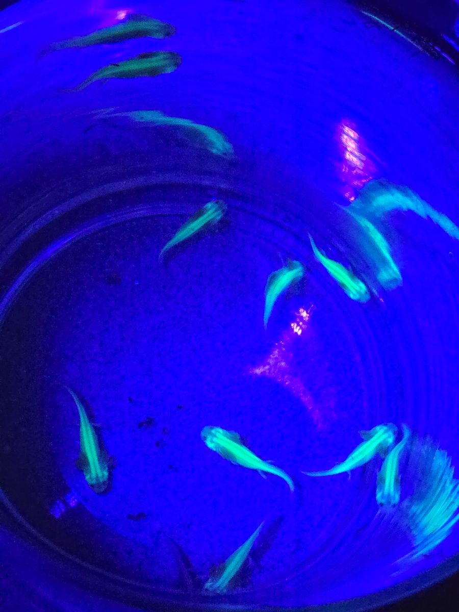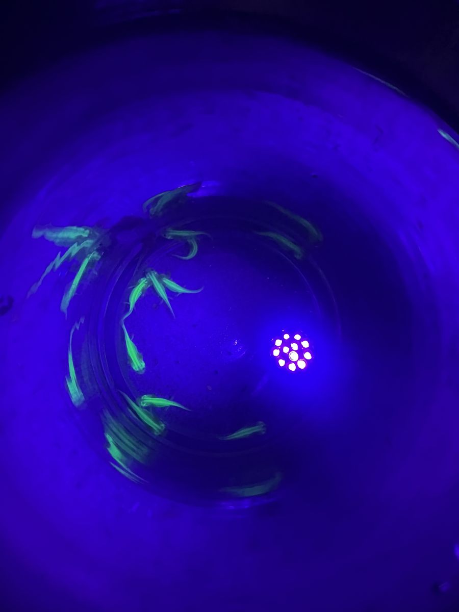 ZelleGlow under black light. 3-5 inches Jueveniles. They run you around $75 minimum at locals stores. good deal