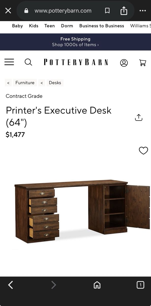 Pottery Barn executive desk purchased a couple years ago. Trying to get a standing desk, so would be willing to hear trades for that only….. or cash.