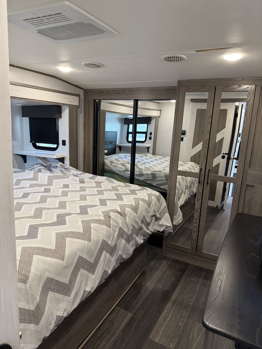 We are selling our 2022 ElkRidge 37BBH fifth wheel trailer. The trailer is in pristine condition inside and out. Sleeps 8 people. Bunkroom with bathroom! Master bedroom with washer and dryer hookups. Brand new tires . It has a hydraulic leveling system, 425 watt solar panel that keeps the brand new lithium batteries charged. Just need something a little different for our family.