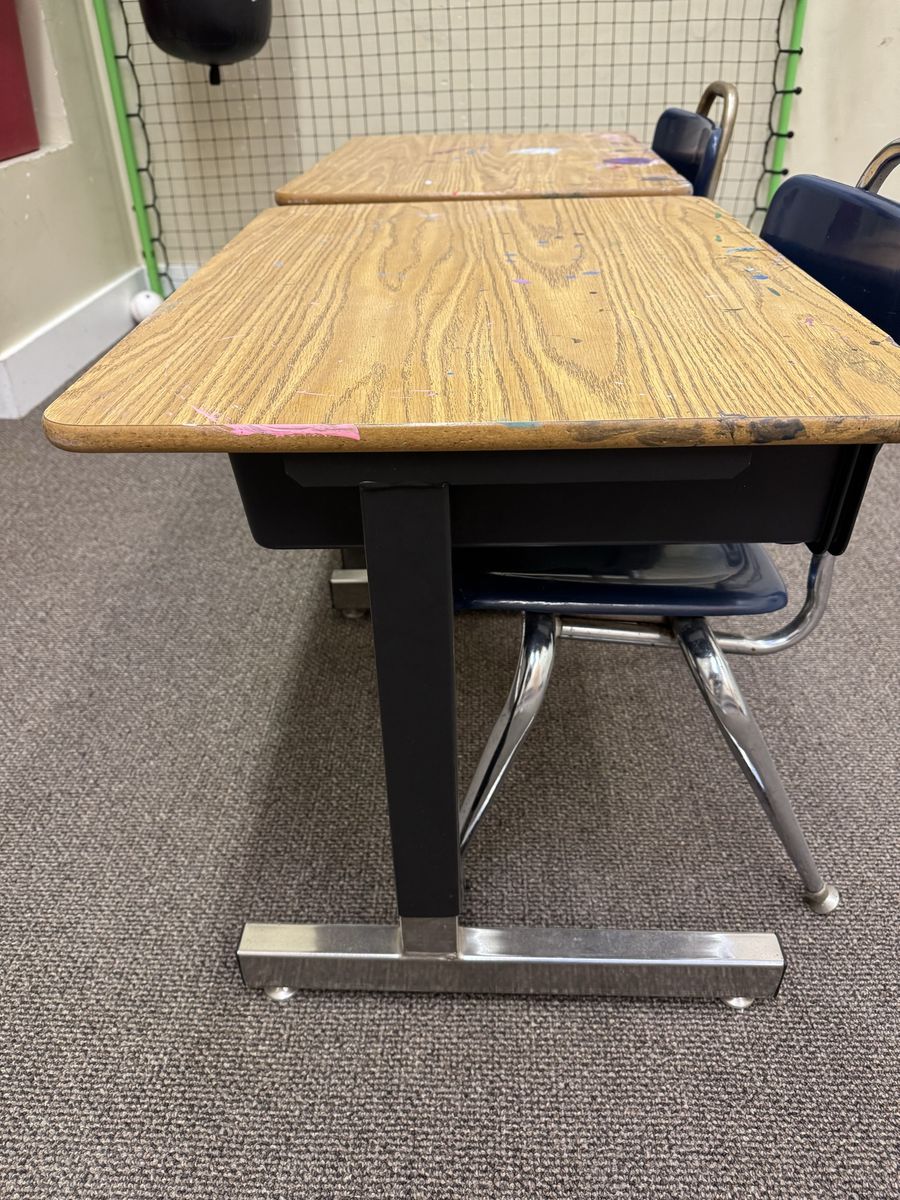VenmoTwo kid’s school desks and metal chairs. It looks like the desk height is adjustable. Both sets for $40.