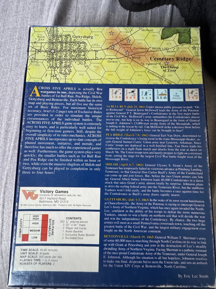 Across 5 Aprils: A Civil War Pentagame featuring the battles of Bull Run, Pea Ridge, Shiloh, Gettysburg, Bentonville.