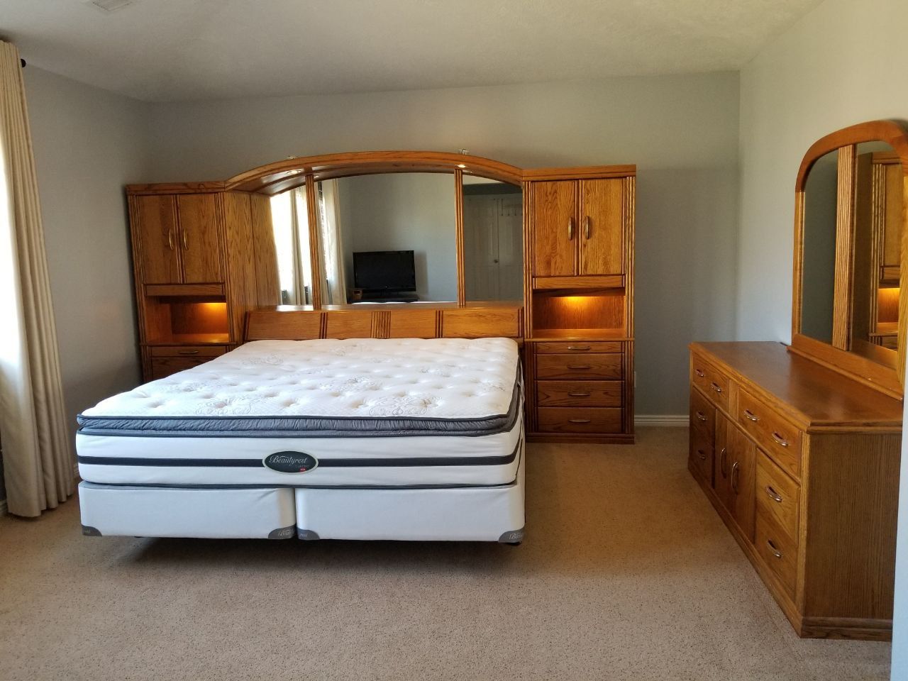 Price is for the set: headboard plus side piers (including mirrors), dresser with mirror. I will not sell pieces separately.