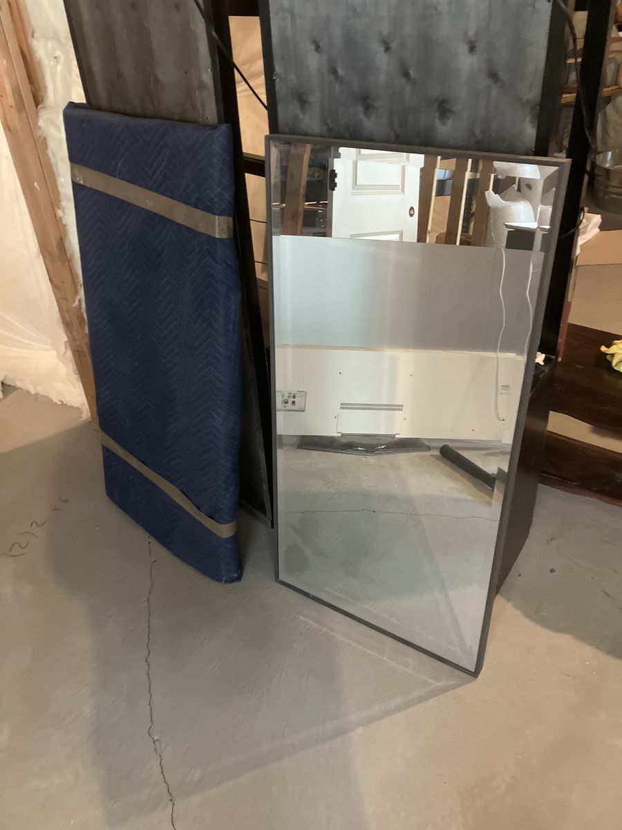 Can be bought in a set or individually. 60$ for both, 40$ for one. The frame appears to be wooden, and both mirrors are exactly the same. One is still in packaging from a recent move, but is in good condition
