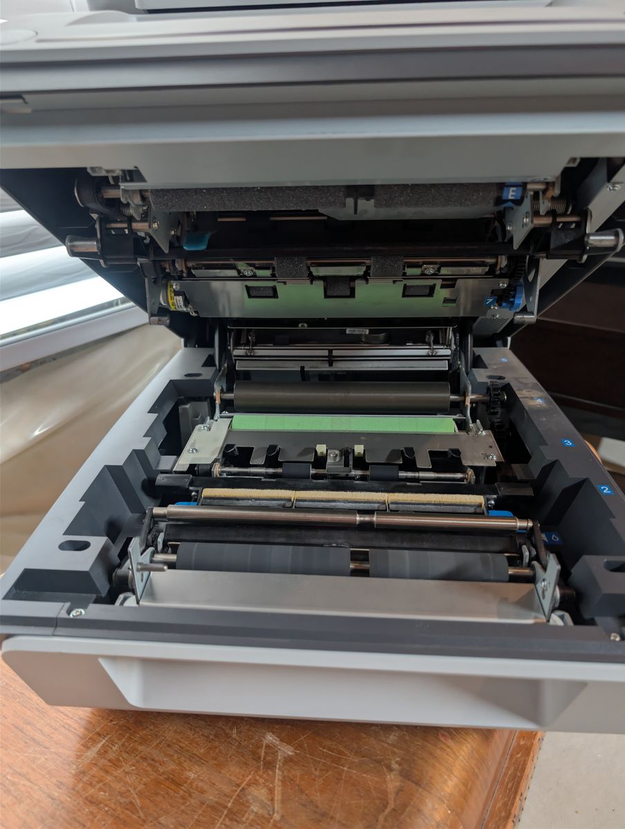 Feeder Capacity: Two document feeders (each holding 100 sheets) with hopper swap for continuous, uninterrupted feeding, plus one insert/BRE feeder.