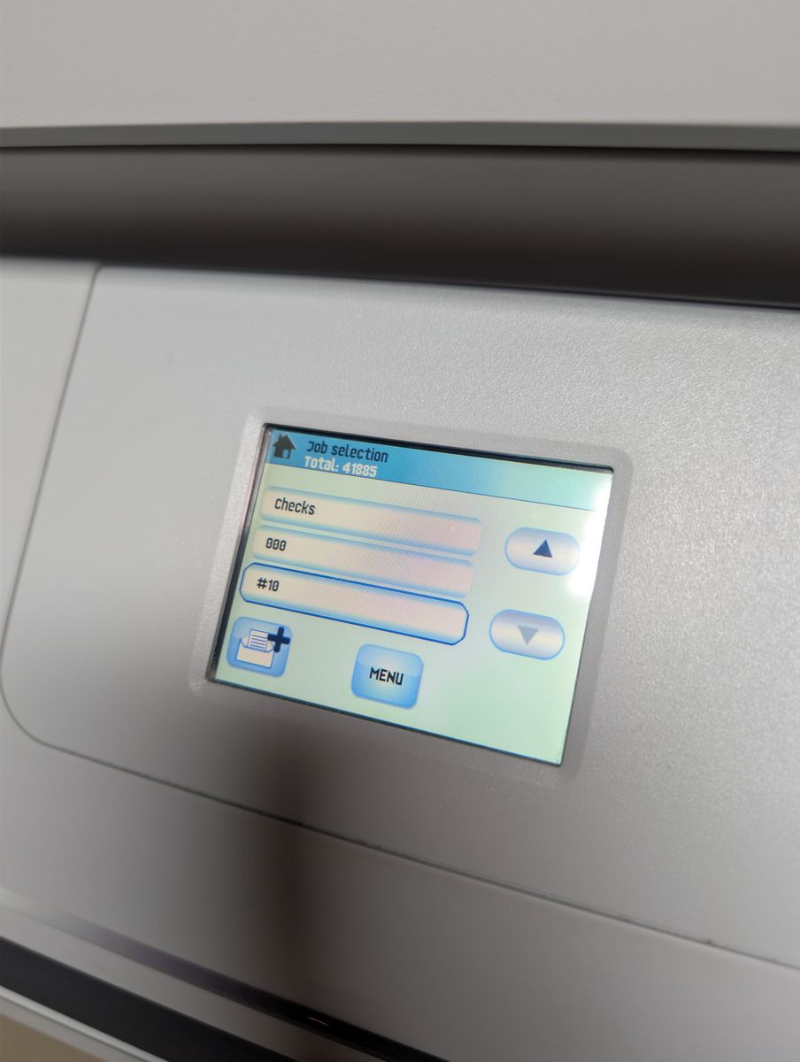 See photos. Machine works well. Counter 41,885 processed envelopes.