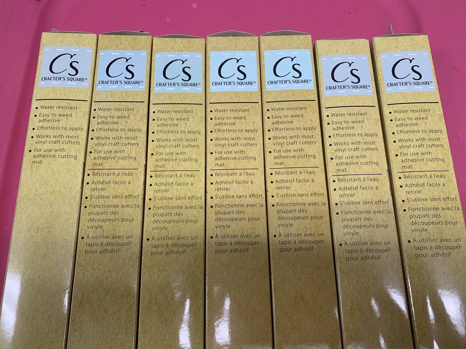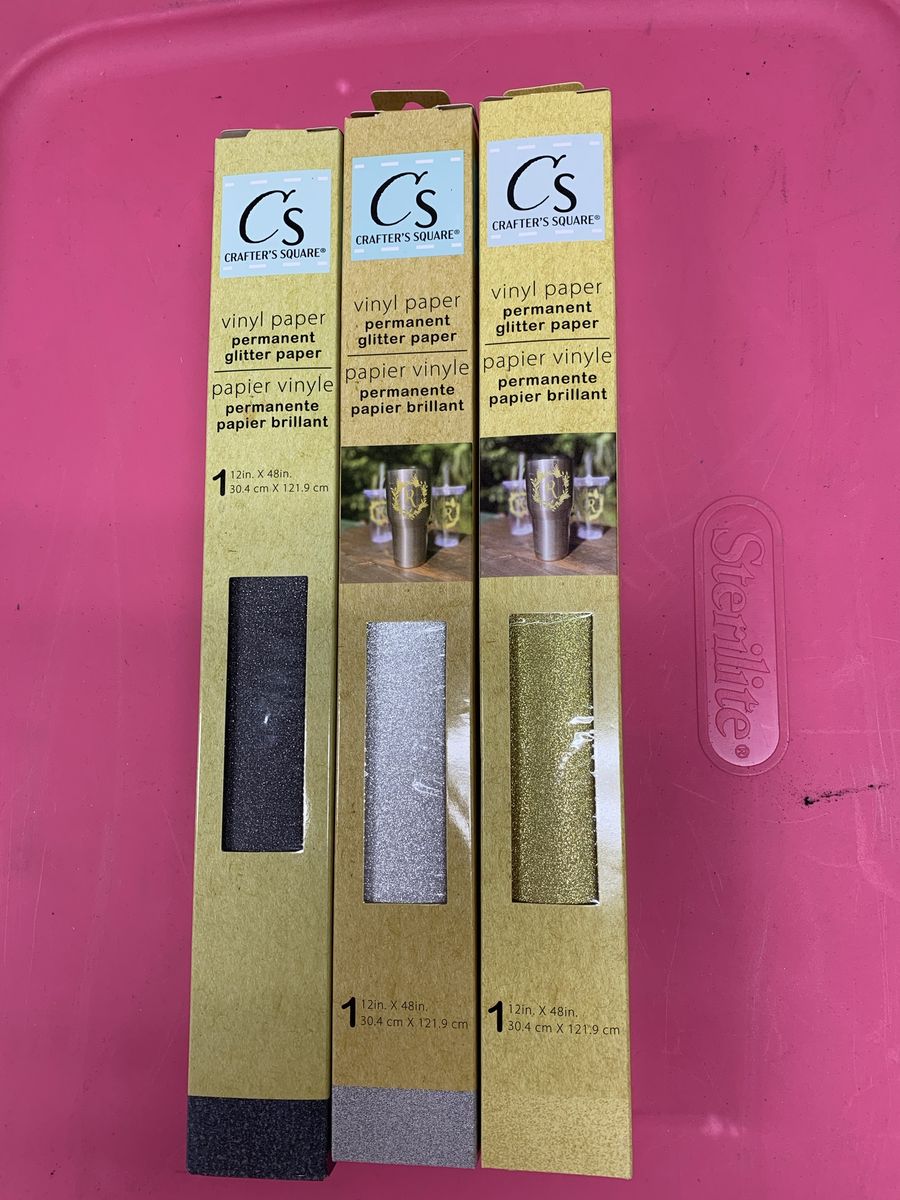 VenmoLot of Crafter’s Square vinyl paper. 7 are permanent, 3 are permanent glitter paper, 1 is removable. All are new, never been cut. Sold the Cricut machine a while ago and forgot about these that were is a storage bin.