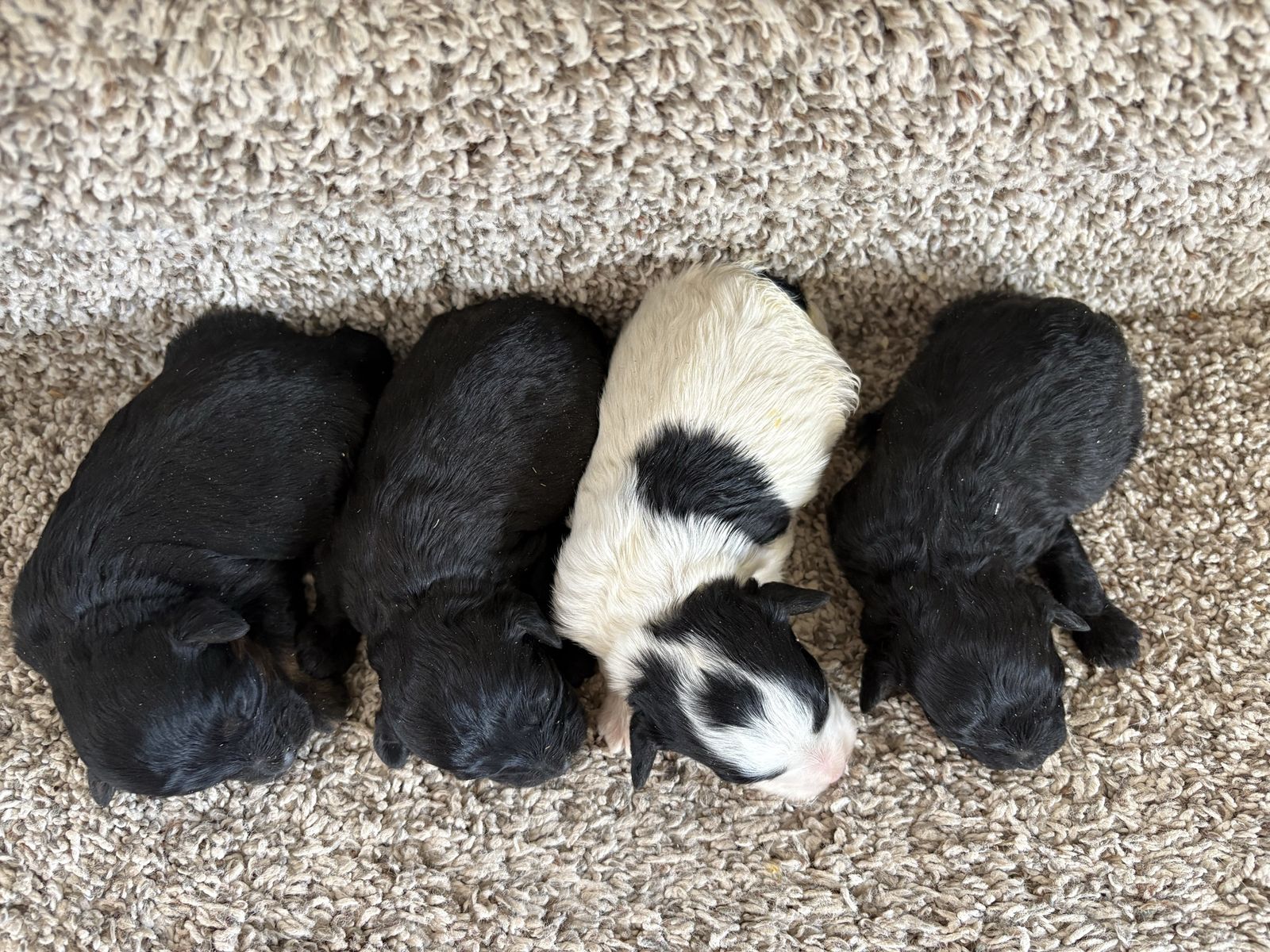 These cute little Cavapoo puppies were born April 7th and will be ready to go home the first week of June! These puppies will be low to no shedding! And will be about 12lbs full grown! Their mom is a F1 Cavapoo and their dad is an AKC registered toy poodle. There is 3 girls and 1 boy. The boy is the white and black parti. Dew claws have been removed and they will go home UTD on dewormer and will have had their first shots. Message or call me with any other questions! 435-828-8098 Girl with white chest- Available Black and tan girl-Available White and black parti boy- Available 2nd girl with white chest- Available