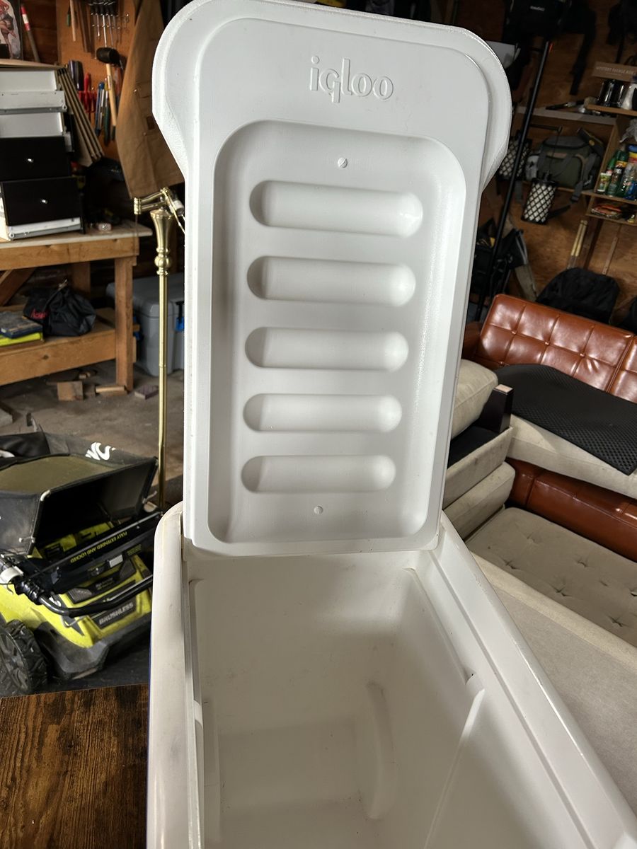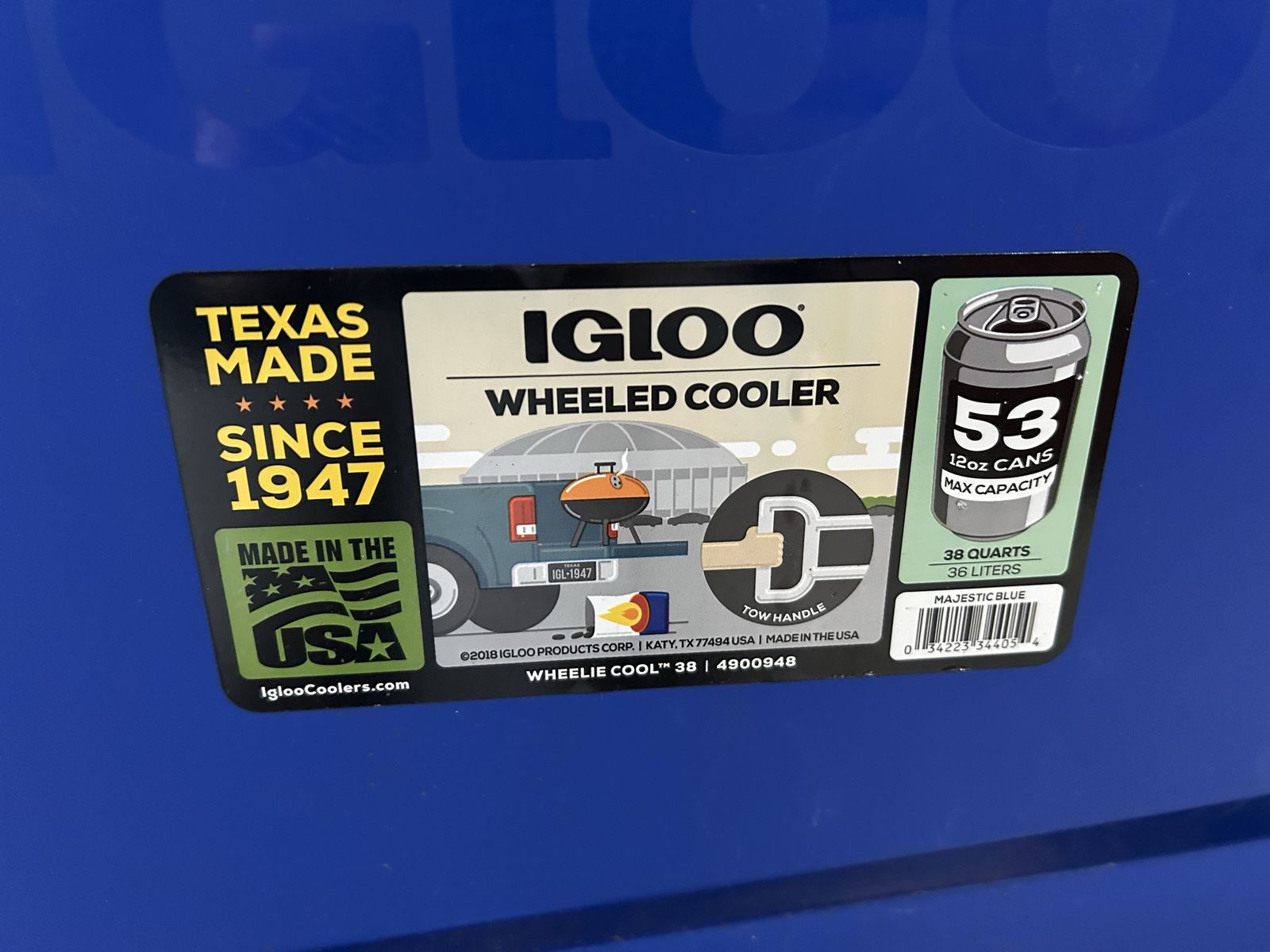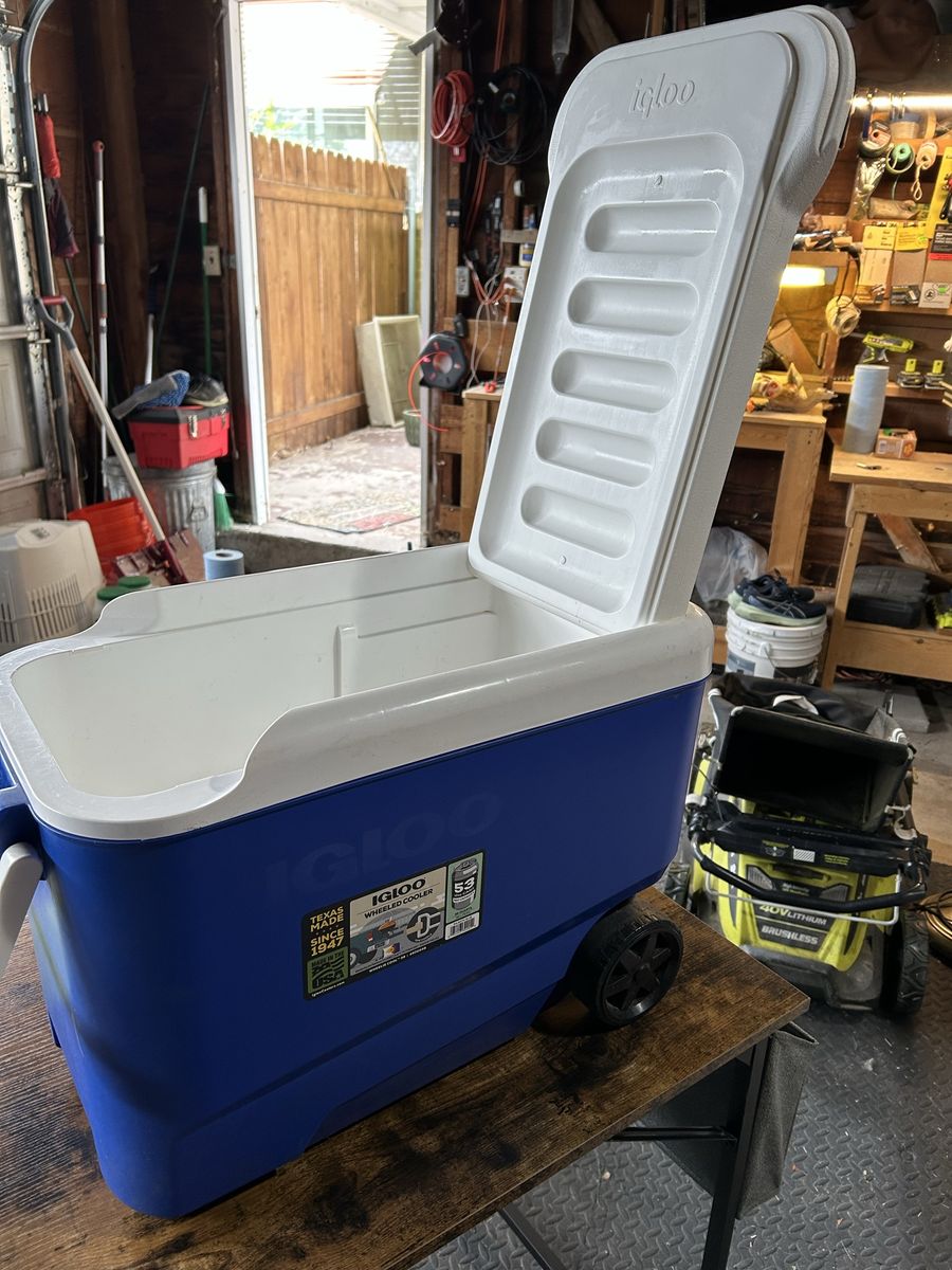 ZelleIgloo cooler with wheels and handle. Still functions just no longer need it. 22”x12.5”x16”