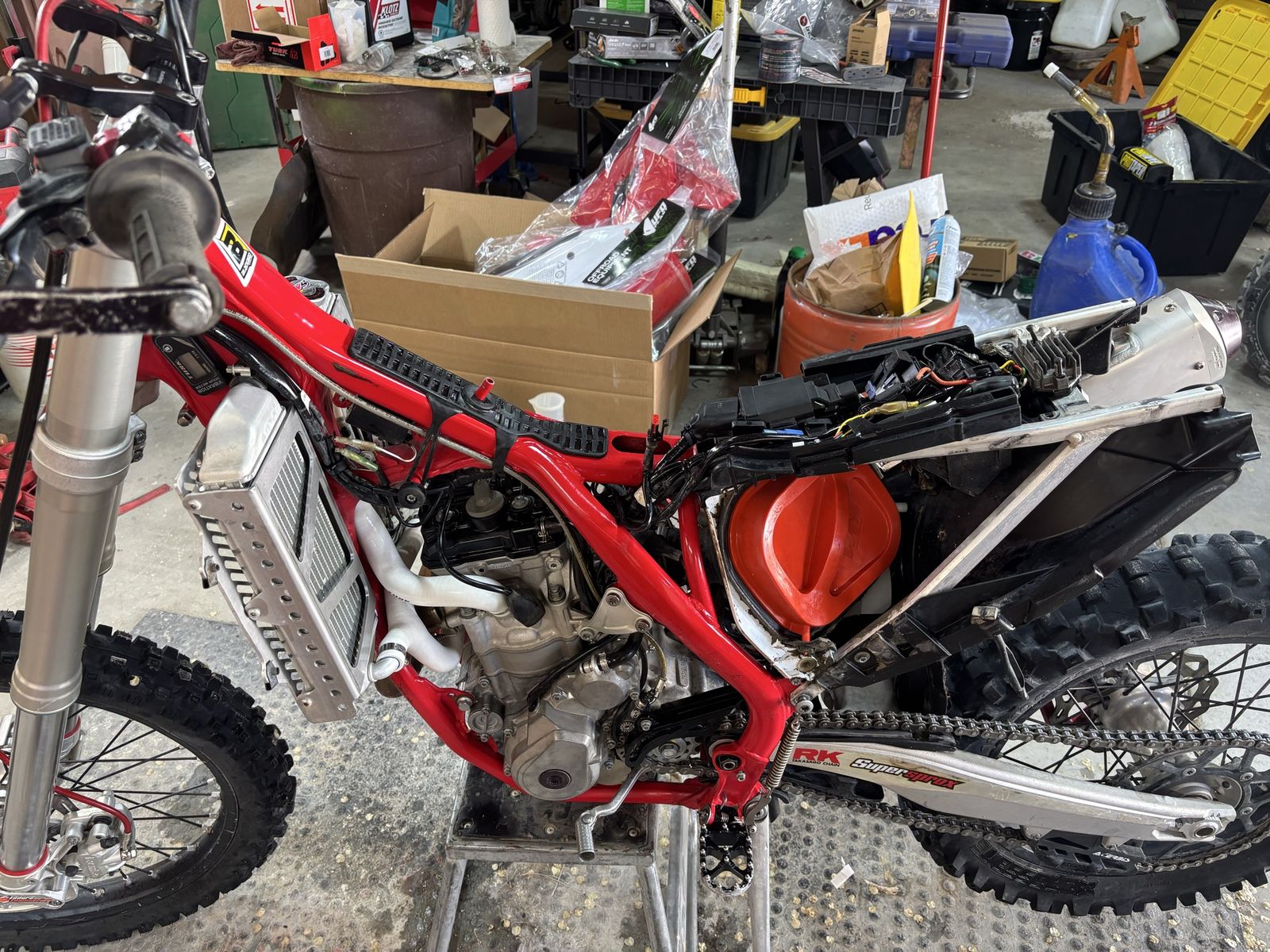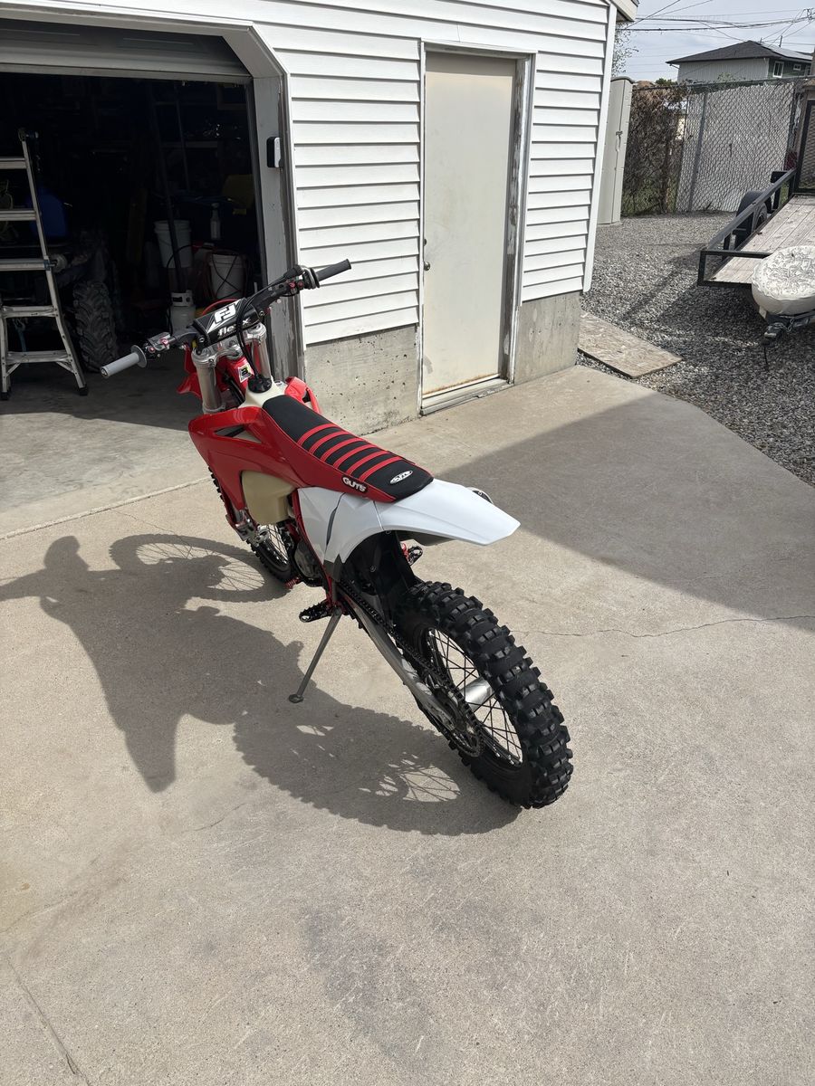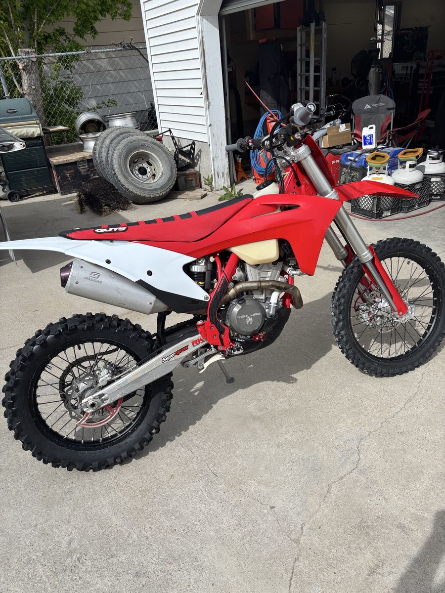 Gas gas 350. 141 hours on bike with 4 hours on a fresh top end. Has flex bars, new plastics and a new rear tire. It has gold valves and set up 234 pound rider. Comes with a recluse clutch and for full asking prices a desert tank and extra wheels and tires. Will consider trading for a 300 2 stroke.