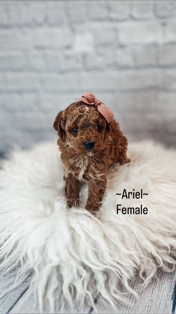 ApplePayHere at Pugsley Poodles our 3 amazing poodle mommas have cycled together and we currently have 3 beautiful AKC registered small miniature or large toy poodle litters. They will mature 7-11lbs All puppies and parents are genetically health tested and are completely genetically clear including IVDD CDPA and CDDY. We have several puppies with the desired color traits of bb, kyky, kbky, atat, ee or Ee Each puppy has been genetically tested for a full color panel through animal genetics. (Parents pictured) They will be priced at 2500$-3500$ Pet Only ( puppies are priced individually) Additional fee for full AKC registration/ breeding rights. Puppies go home date May 8th, or May15th according to their date of birth.