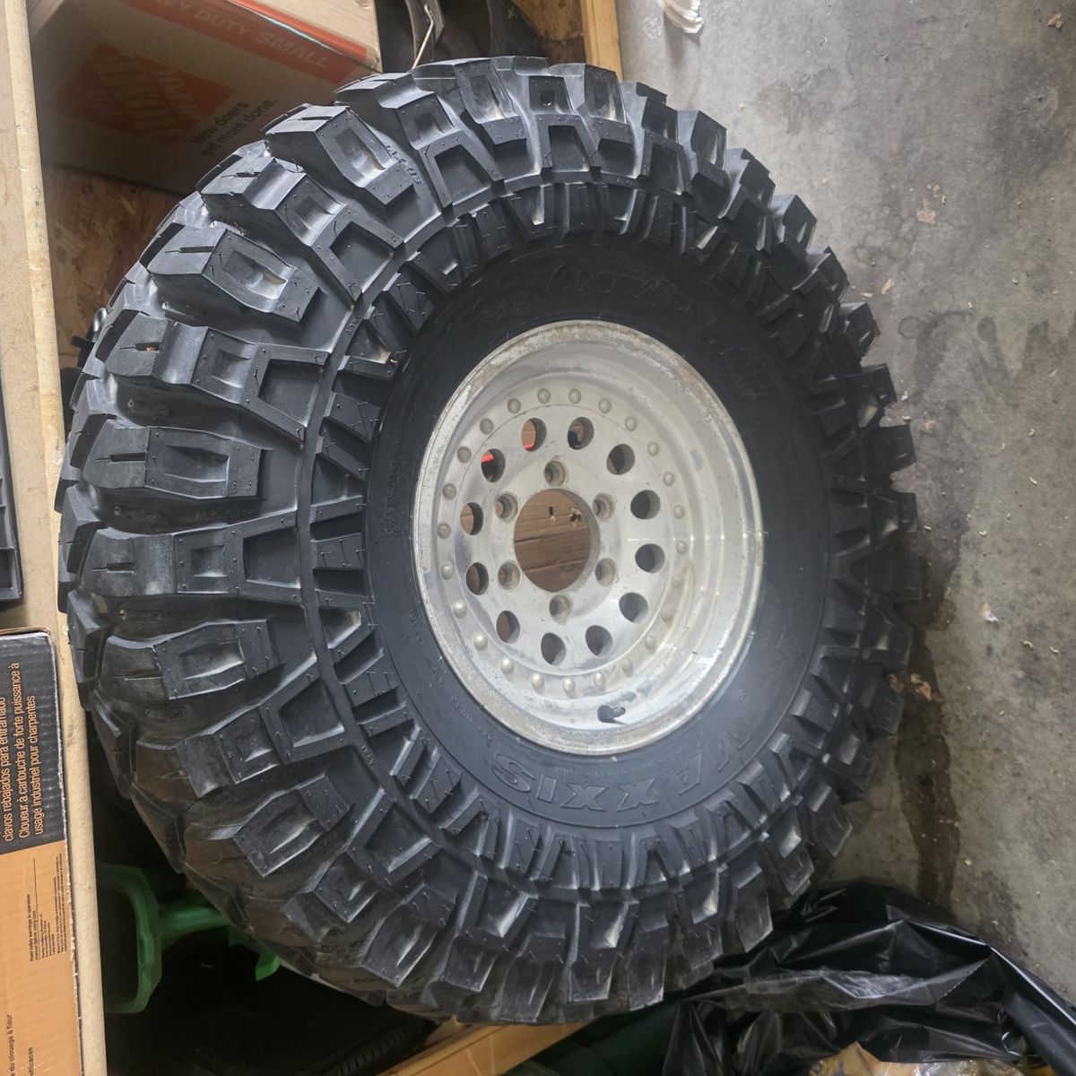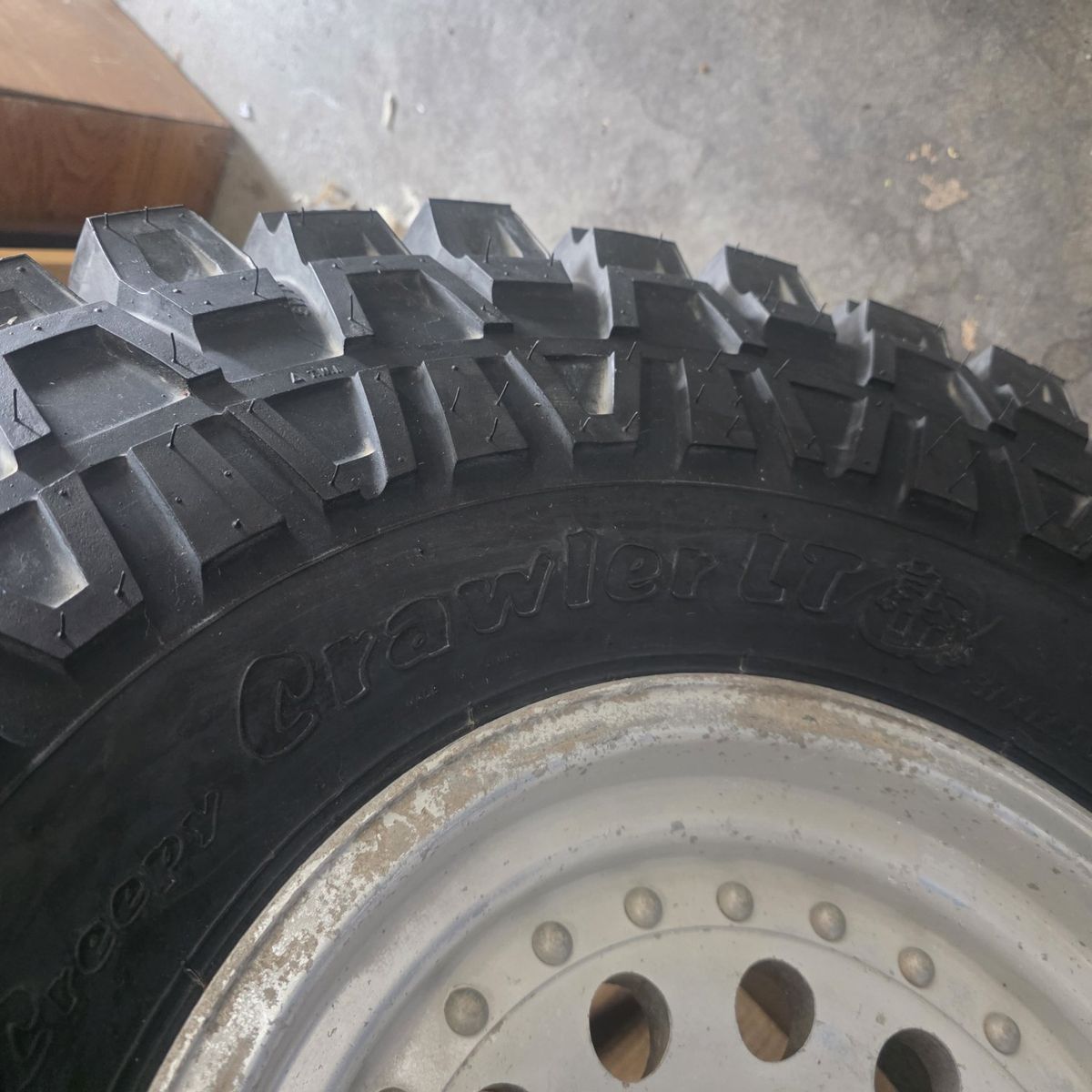 Venmospare 37x12.5 15maxxis creep Crawler tire with 3/4 tread on it. its mounted on 6 hole aluminum wheel. selling for a friend . stored in garage. $225 OOB