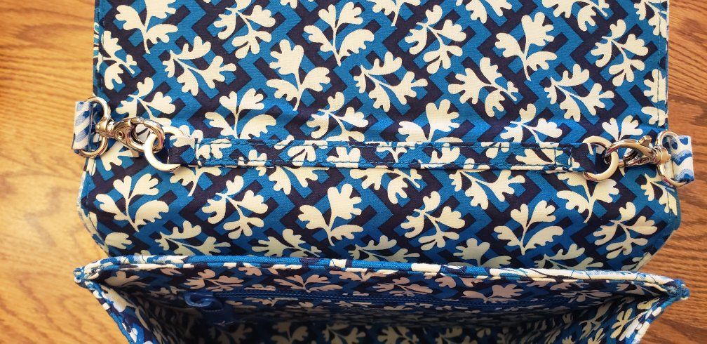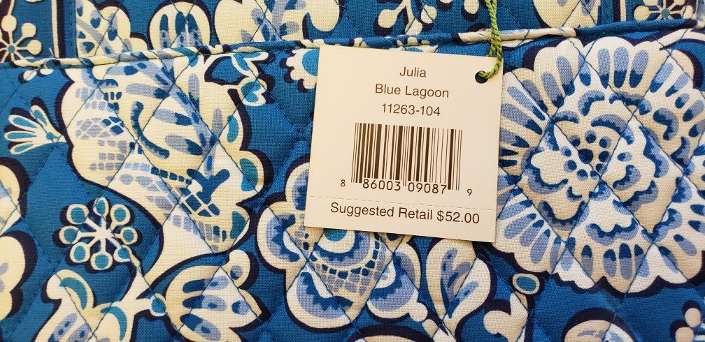 Quilted cotton fabric with a floral or paisley pattern in a "Blue Lagoon" colorway.