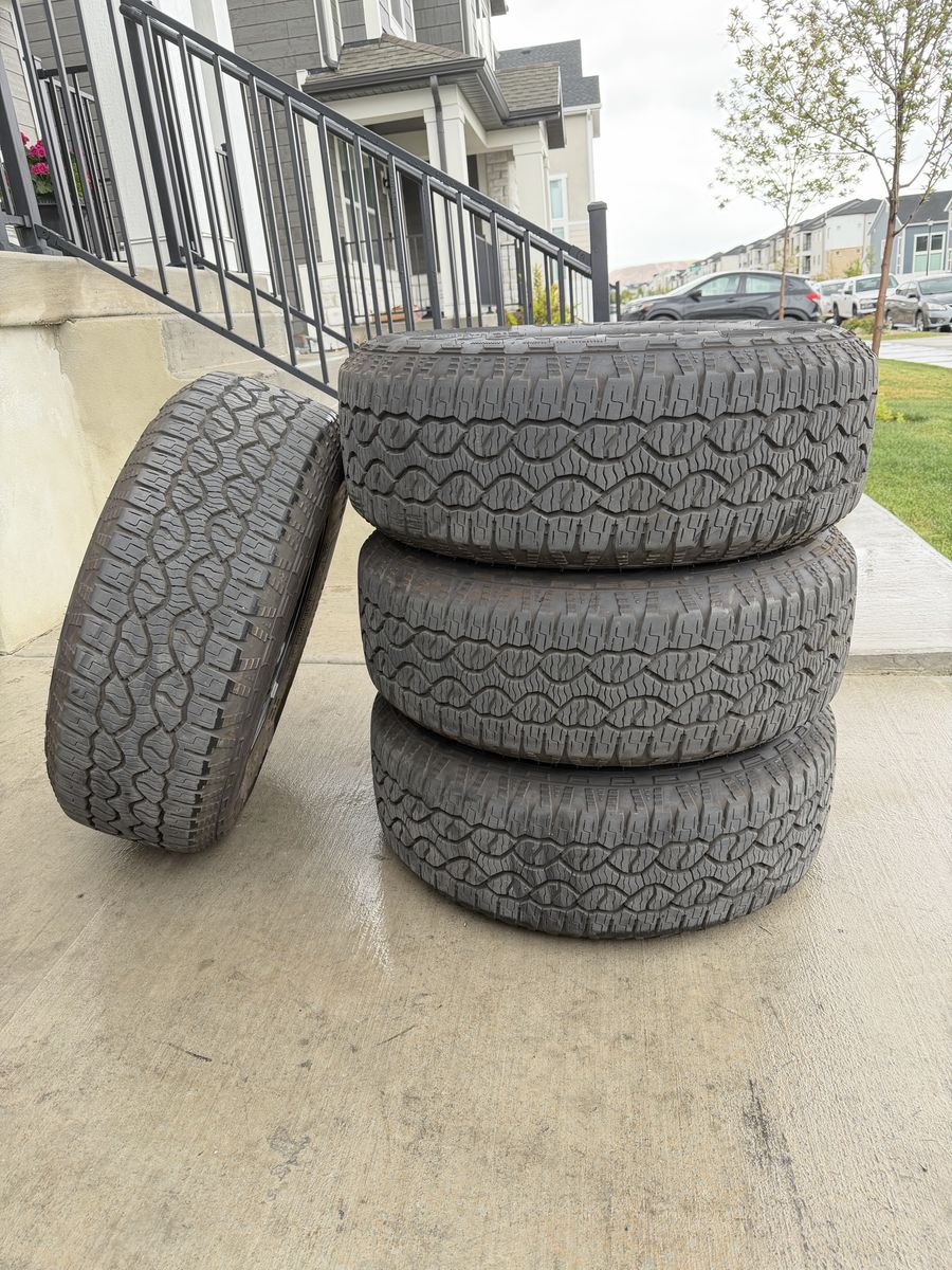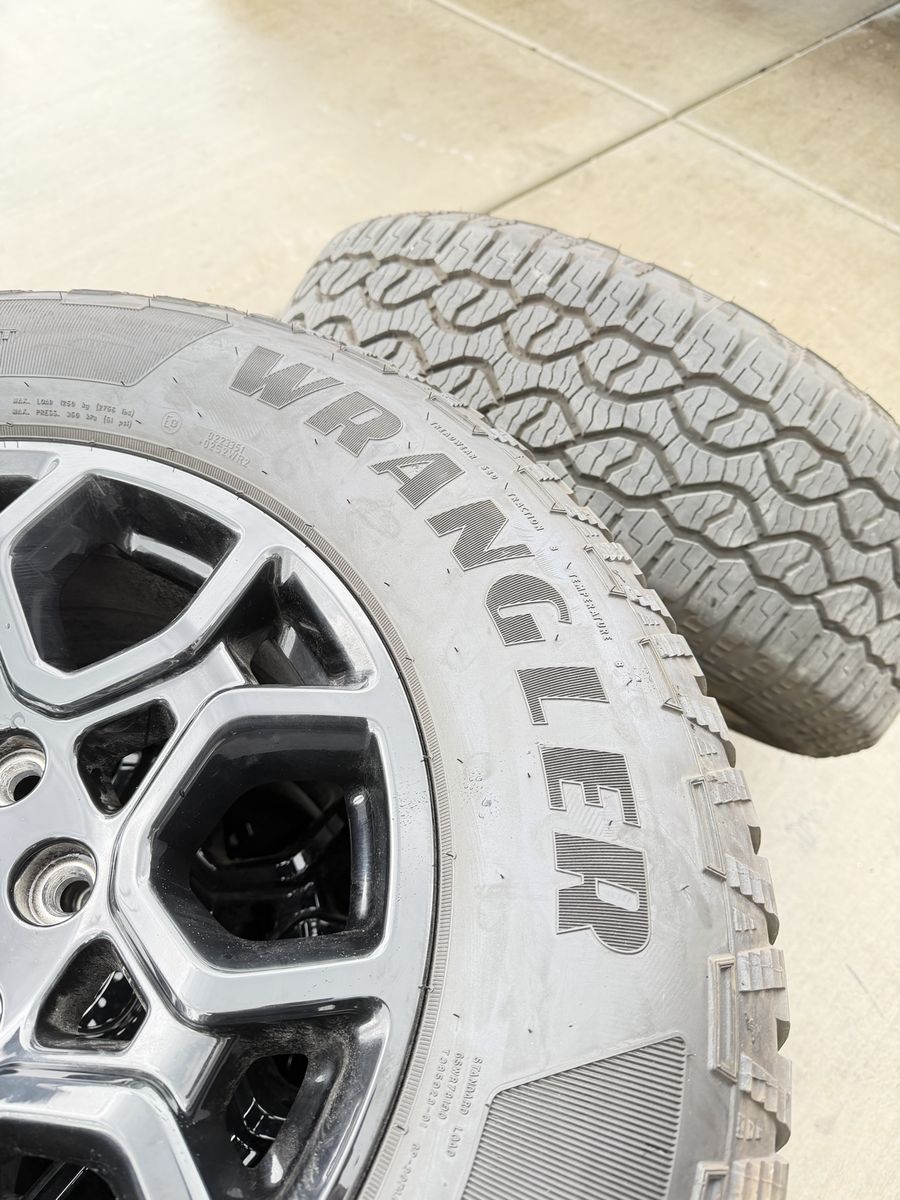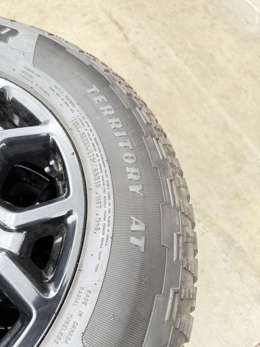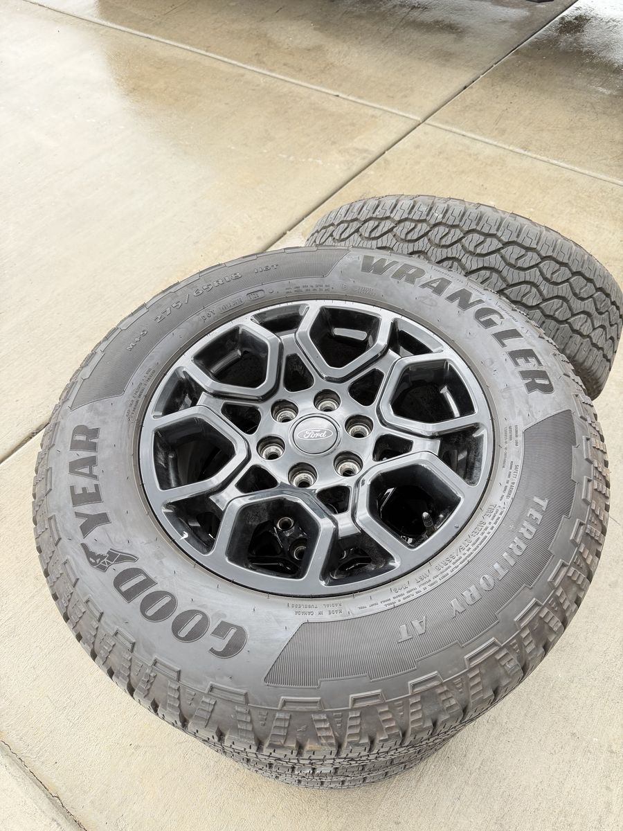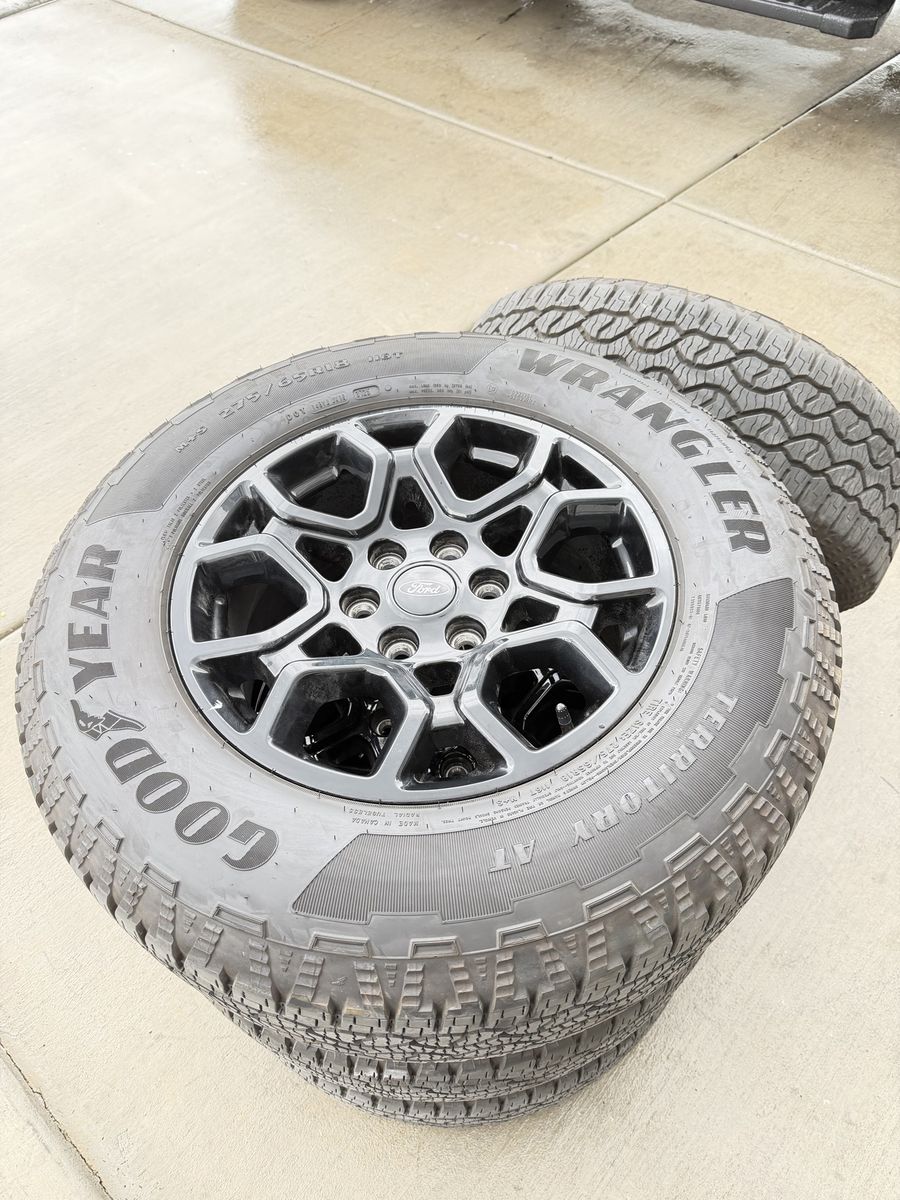 ApplePaySet of 4-Ford F150 Rims and Tires 275/65R18 Goodyear Wrangler Territory AT Almost new only 400 miles on them,asking $1800 Comes with sensors and lug nuts They balanced and ready to go Bolt pattern 6-135 They will fit ford f150 from 2004-2026 Ford expedition and raptors and Lincoln Navigator Text anytime 385-402-2292