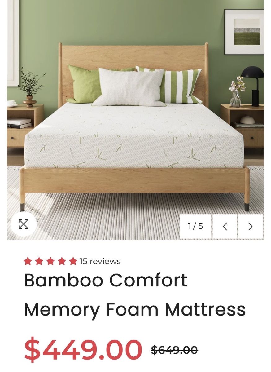 King size 10 inch memory foam .Medium-feel all-foam mattress adapts to any sleep style. Bamboo-infused fabric boosts breathability while Green Tea infused Gel AeroFusion Foam keeps you cool and relaxed. New