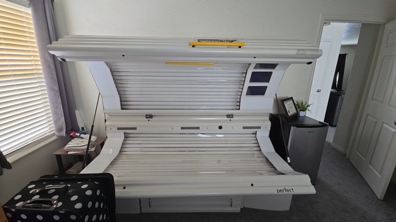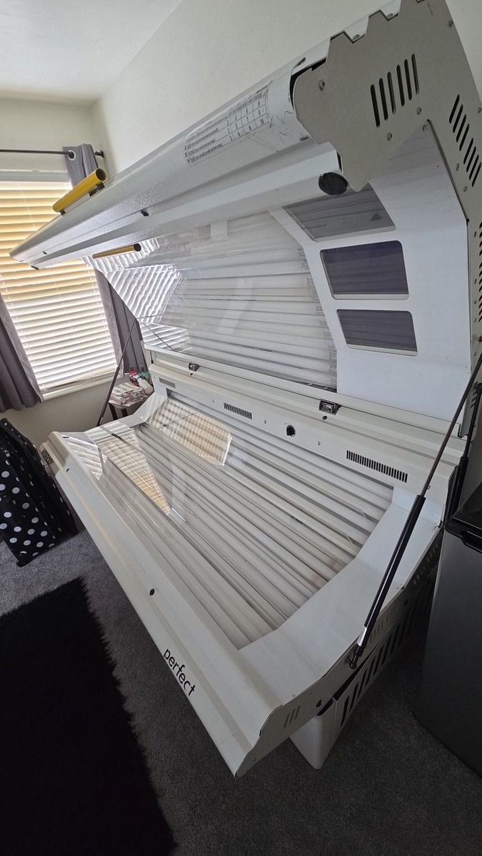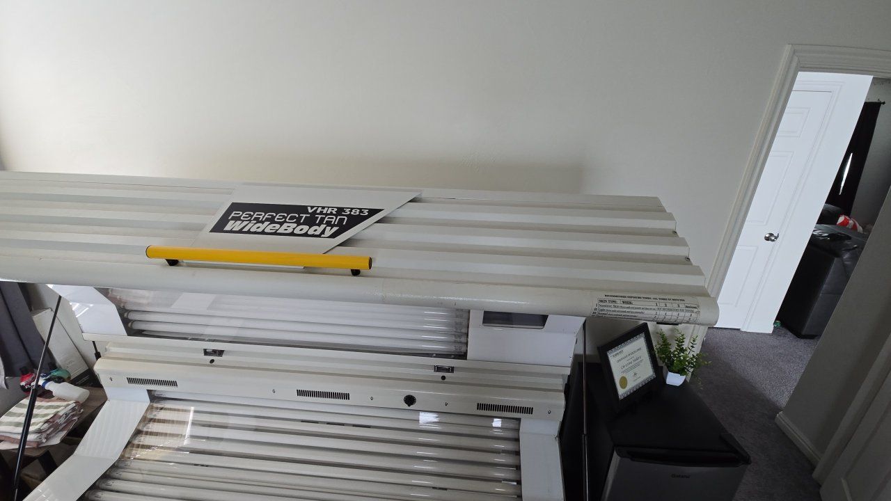 Commercial-grade tanning bed – “Perfect Tan WideBody VHR 383” This is a full-size salon-style bed, not a small home unit. Great for someone who wants a strong tan at home or for a small business setup.