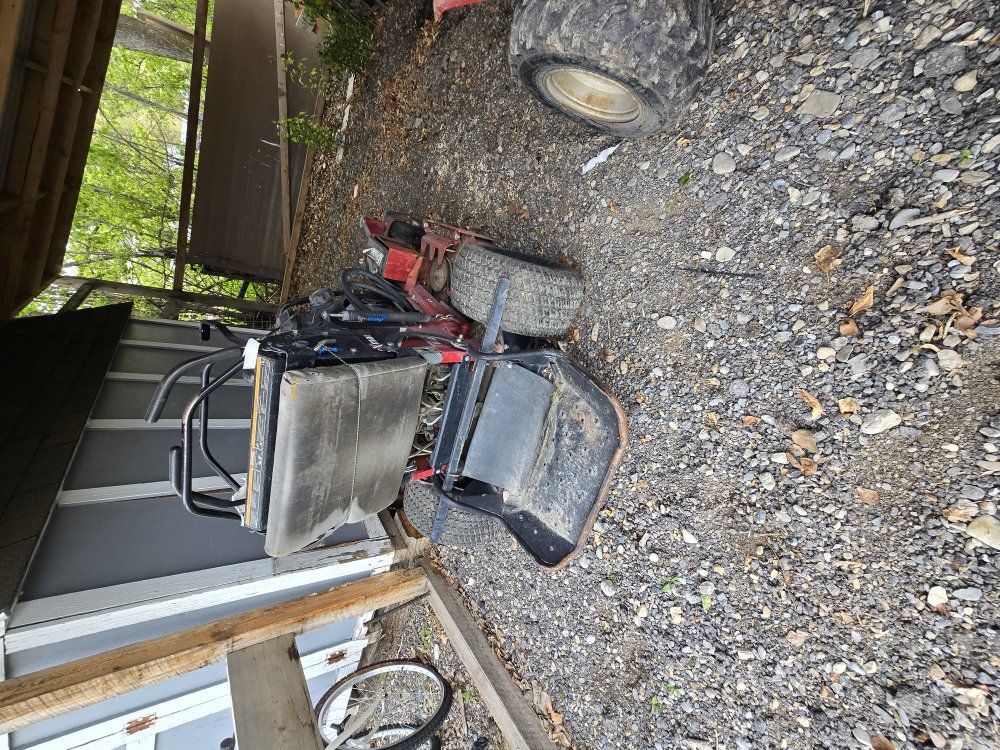 machine runs great, blades could be sharpened and left tire has a show air leak. this machine is way more than I need for my lawn. let me know if you have any questions.