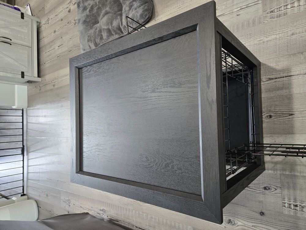 VenmoPerfect for small and medium sized dogs. The kennel is black in color and has seen almost no use. It's basically brand new. It is too big for the space we bought it for so it's just taking up space in our garage.The exterior measures 27"Lx22"Wx24"H. The wire kennel can be removed from the wood frame for easy cleaning or to take on trips. The wire kennel measures 24"Lx17"Wx20"H. Paid $130, asking $100 obo.