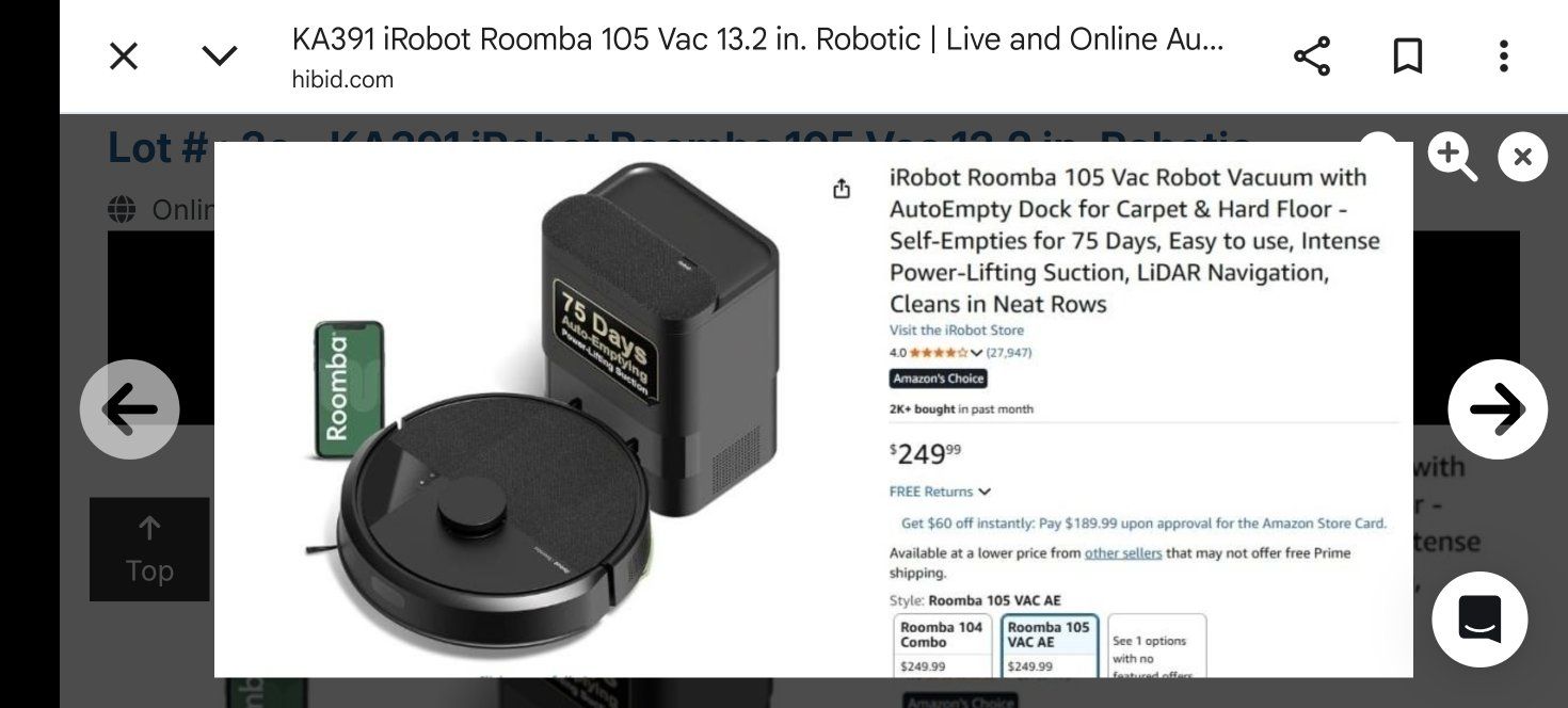 iRobot Roomba 105 Vac 13.2 in. Robotic Vacuum with Smart Navigation Path + AutoEmpty Dock in Black.