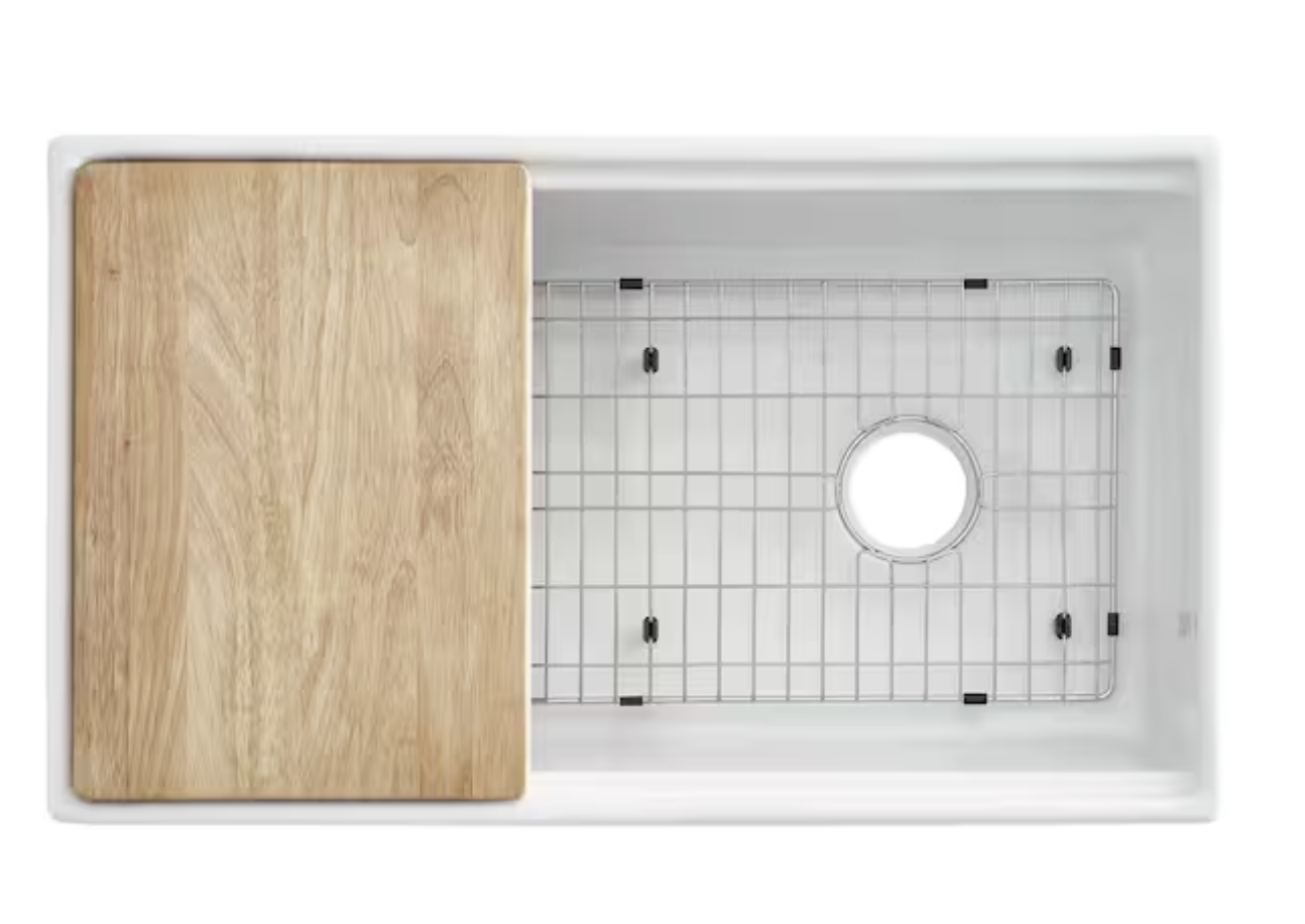 Sinkology Bradstreet II 33 in. Farmhouse Apron Front Undermount Single Bowl Crisp White Fireclay Workstation Kitchen Sink