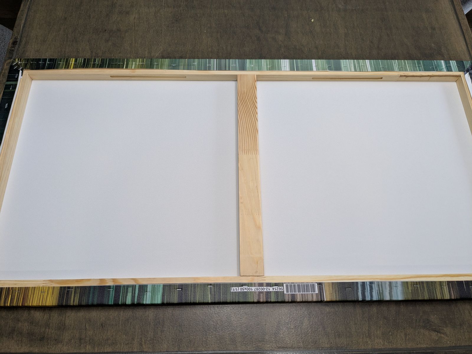This is a canvas artwork of a hobbit hole in the shire. It measures approximate 19.75” x 39.5”