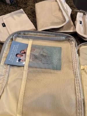 packing cube / travel organizer set (fabric zip pouches, mesh panels, multiple sizes). Multiple pieces (looks like a full set, ~6–10 items)