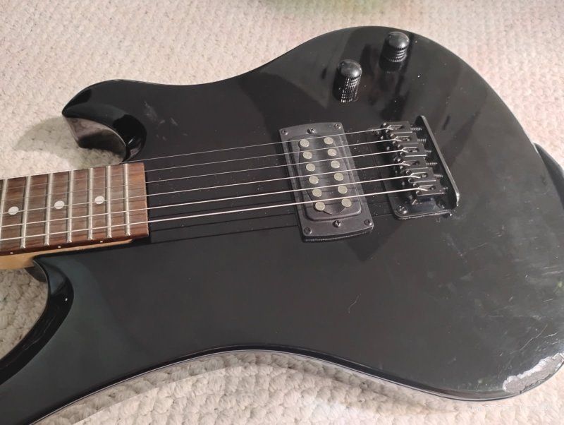 This is a First Act Electric Guitar. It does have a few bumps and bruises but still works just fine. comes with extra strings, gig bag, strap and a few other small things. If interested or have any questions please text or call 801-four five eight-835zero Thanks. I'm listing this for my niece.