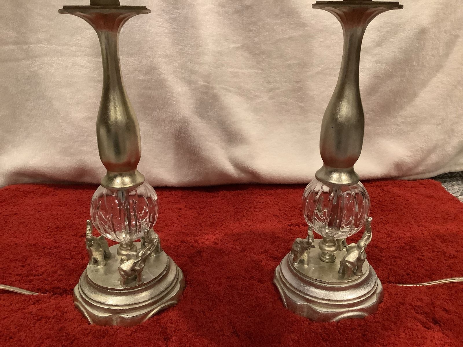 VenmoPair Antique Table Lamps by Crystal Clear Ind. Exceptional High-Quality Crystal Pieces, The shade of one of the lamps has some small spots; you can see them in the photo When the light is on