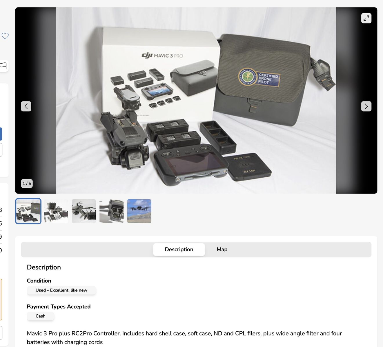 ApplePayLike new Mavic 3 Pro with the best prosumer controller, the RC Pro. Includes four (4) batteries, hard and soft cases, all charging gear, set of ND Filters, Wide Angle filter, star filter and more. Like new condtion. Must sell...