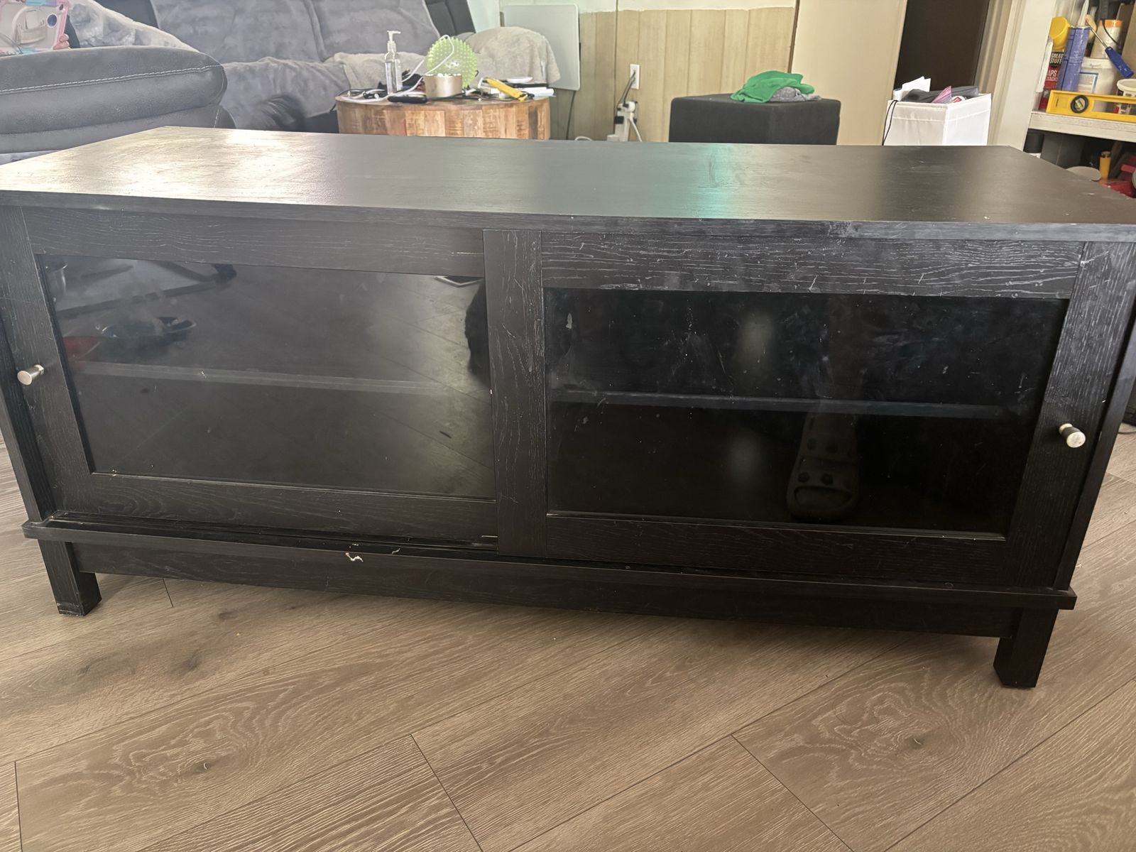 ApplePayFour shelves /cubbies , sliding doors