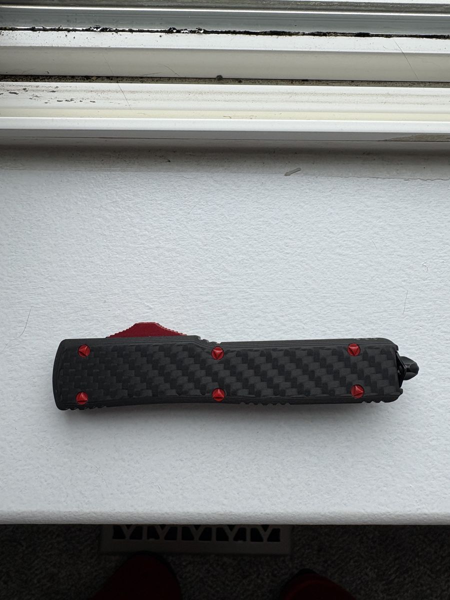 Carbon fiber one side, D2 steel, still have all original packaging etc. this retails new for $150 plus shipping and taxes so save your self some money! Open to trades as well.