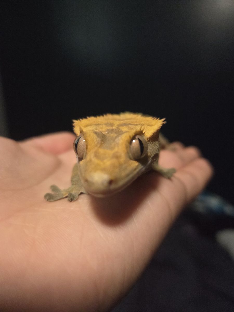Meet Stickers! He is a male crested gecko, about 1 year old, and at sexual maturity. He is healthy, active, and has a fun, curious personality. He’s used to regular handling, loves to explore, and his favorite spot is sitting on top of your head!