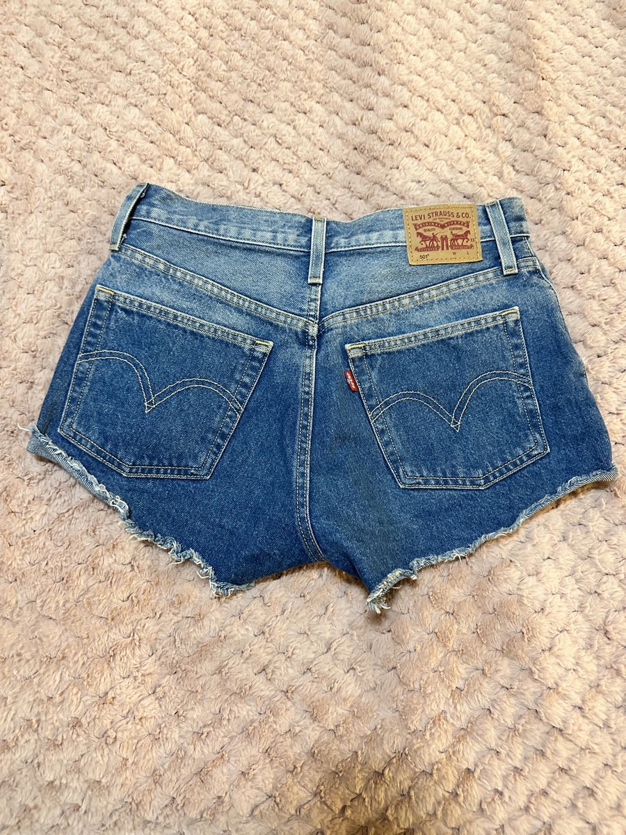 Selling a pair of classic Levi’s 501 Original Cut-Off Shorts. These have that perfect vintage look with a high-waist fit and the iconic button fly. The raw, frayed hem gives them a great lived-in feel. Details: • Brand: Levi’s 501 • Fit: High Rise / High Waisted • Wash: Medium Indigo (classic blue) • Closure: Signature button fly • Condition: Excellent. The denim is sturdy and high-quality with no stains. The raw hem is naturally frayed. These are a summer essential and go with everything. From a clean, smoke-free home.