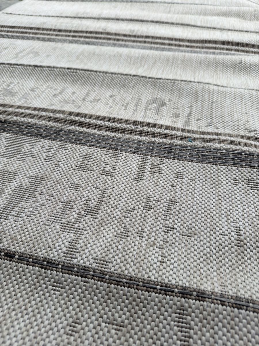 I tried to get good pictures so you can see the pattern. Rolls/folds nicely into a trunk/backseat. I can’t find any stains but it does have signs of light wear