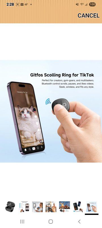 TikTok scrolling ring, free your hands: Gitfos TikTok scrolling ring brings a new experience to your leisure time. When you are lying on the bed or sofa browsing TikTok, YouTube and Instagram videos, or reading novels, you can easily achieve remote control without swiping the screen. You can freely control the video page up and down, increase and decrease the volume, play/pause and like functions, allowing you to enjoy your leisure time. Quickly like, smooth interaction: When watching your favorite live broadcast, this Tik Tok scrolling ring helps you easily achieve at least 5 consecutive likes per second. Just click the power button three times to start or stop the continuous like function. The operation is simple and convenient, and it enhances the interactive experience. Page Turner for Kindle App: This Tik Tok scroll ring can remotely control the page turning of e-book applications. Single-click the up and down buttons to turn the page up and down, and double-click the up and down buttons to turn the page left and right (only applicable to Kindle APP, not applicable to Kindle devices), making your reading more convenient and comfortable. Bluetooth Camera Remote Control: This Tik Tok scrolling ring also has a Bluetooth camera remote control function. You can easily take photos within a range of 33 feet by long pressing the up or down button on the ring, so that every wonderful moment can be perfectly recorded. Extremely long battery life, widely compatible: Gitfos rolling ring is compatible with iOS (version 14.8 and above) and Android devices, and is suitable for a variety of social media and e-book applications. A single charge can be used for 40 hours, and the total battery life can reach 280 hours with the charging box. Meet your long-term use needs.