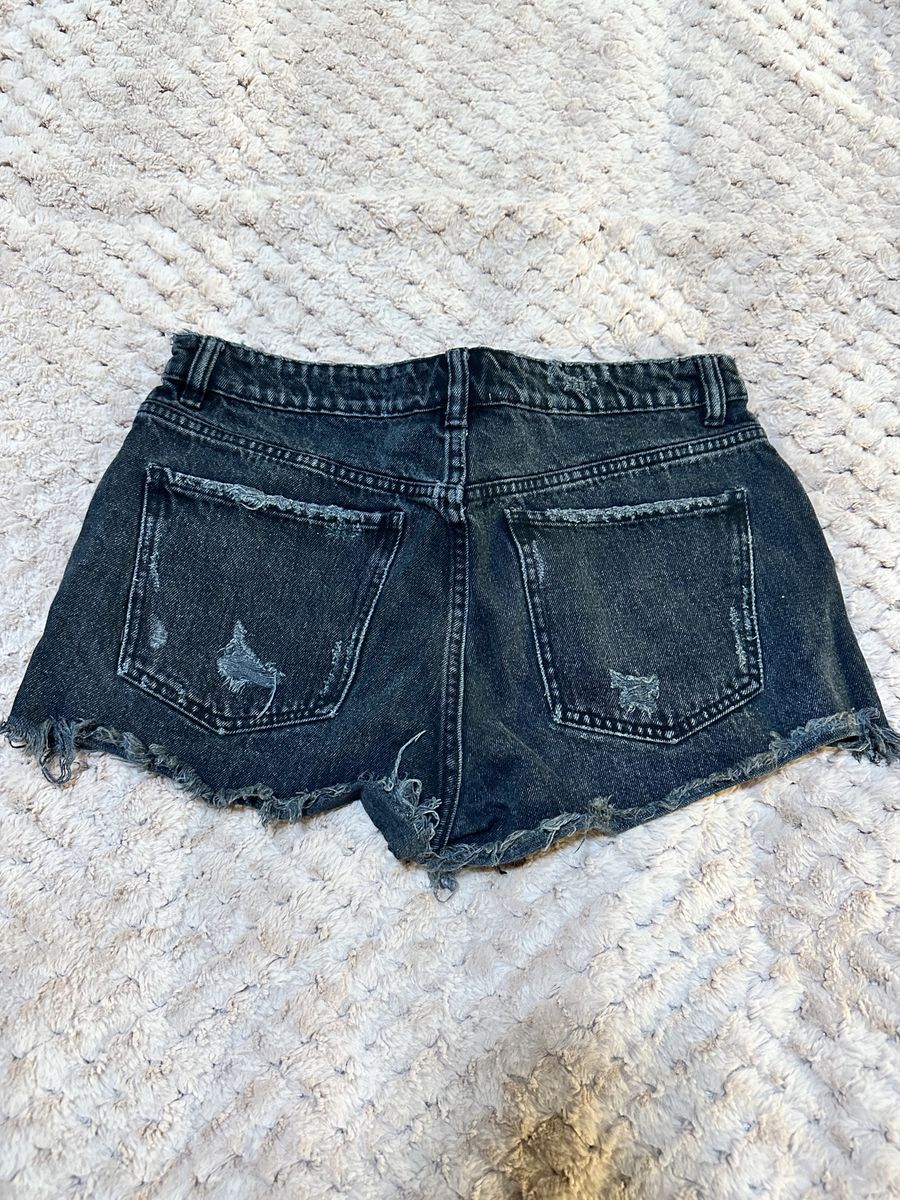 VenmoSelling a pair of Zara high-waisted denim shorts in a washed black/dark grey. These have a great edgy look with factory distressing and a raw, frayed hem. Details: • Brand: Zara • Size: USA 06 (MEX 28 / EUR 38) • Color: Washed Black • Style: High-rise fit with a button fly and classic 5-pocket styling. • Condition: Excellent condition. The distressing is part of the original design. • Fit: Sturdy denim that holds its shape well. These look great paired with an oversized tee or a crop top. From a clean, smoke-free home.