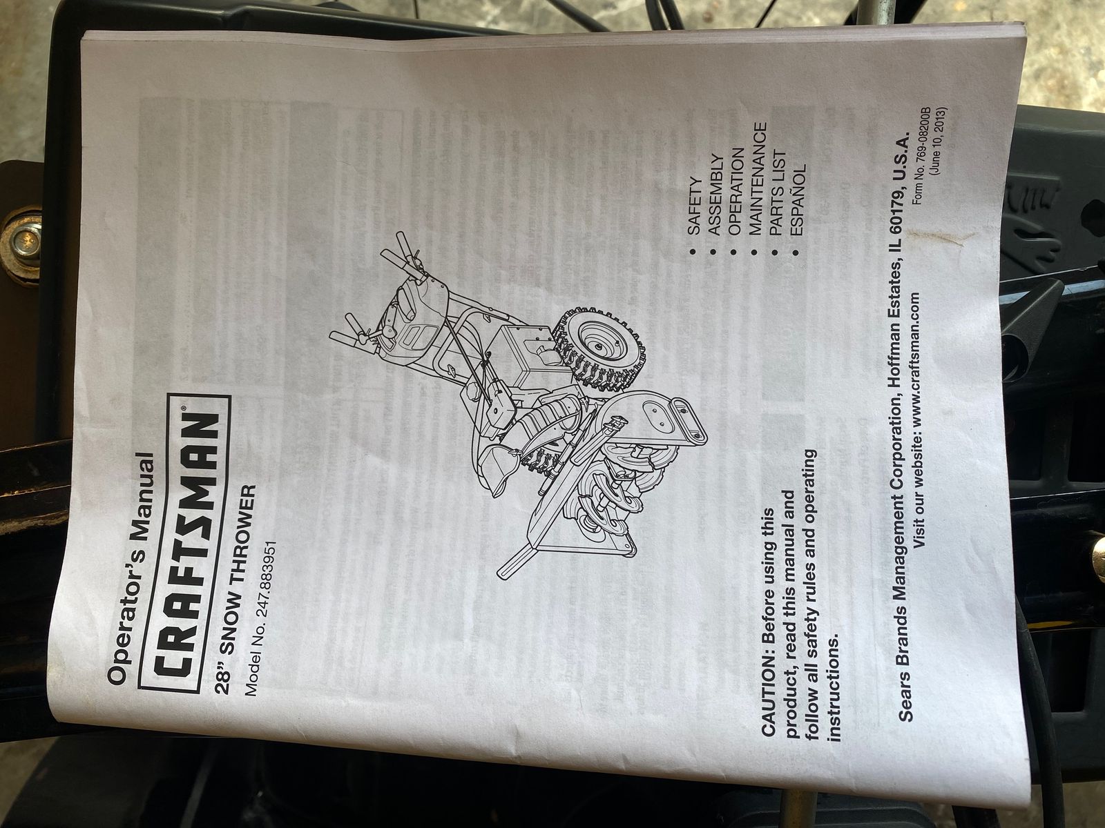 VenmoThis is in excellent condition and works perfectly! Features easy steer operation and electric start and pull start. Starts with one pull! Fully joystick controllable throwing chute. Comes with 3 packs of extra sheer pins, the original manual and a spare key.