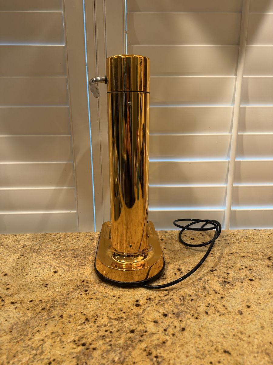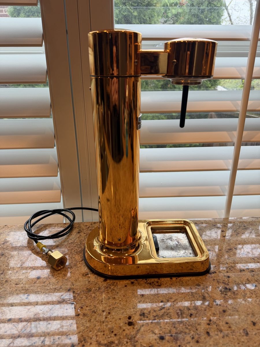 VenmoGold Ararke carbonator with line to connect to CO2 tank. The line can be removed to work with soda stream canisters. It is missing the grate. Works great.