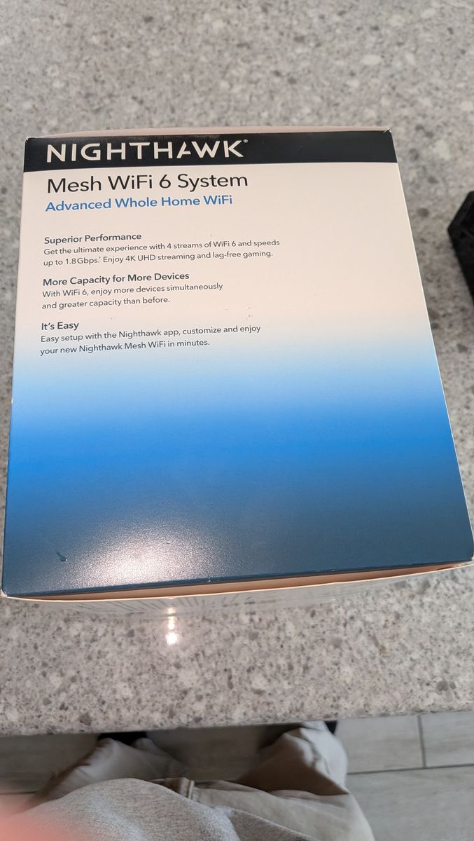 VenmoIn great shape, just upgraded to WiFi 7 and no longer need. Each unit includes a network port for devices that you want to hardwire to the system. Easy to set up using Netgear Nighthawk app.