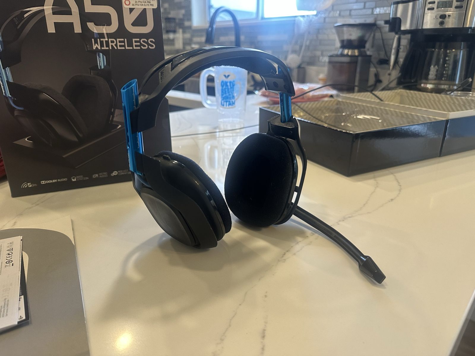 Brand: ASTRO Style: A50 Dolby Wireless Gaming Headset - Gen3 Features: * Limited edition Playstation blue * Compatible with PS4, PS5 & PC * Includes headset, docking station, power cable & fiber optical cable. Condition: Excellent, no flaws, basic wear as seen.