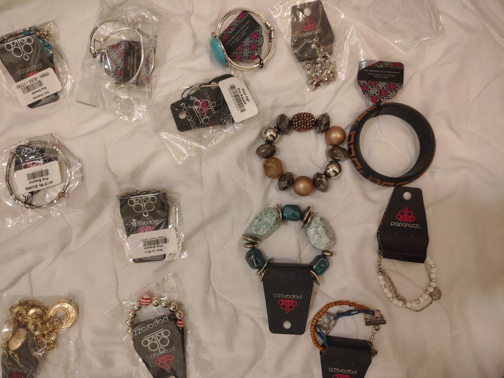 Paparazzi jewelry, new, approximately 90 pieces, 16 earrings ,22 necklaces ,42 bracelets ,nine adjustable rings, these are approximate numbers, sold as is and all for the price of $70. cash only, call or text 801-403-5538
