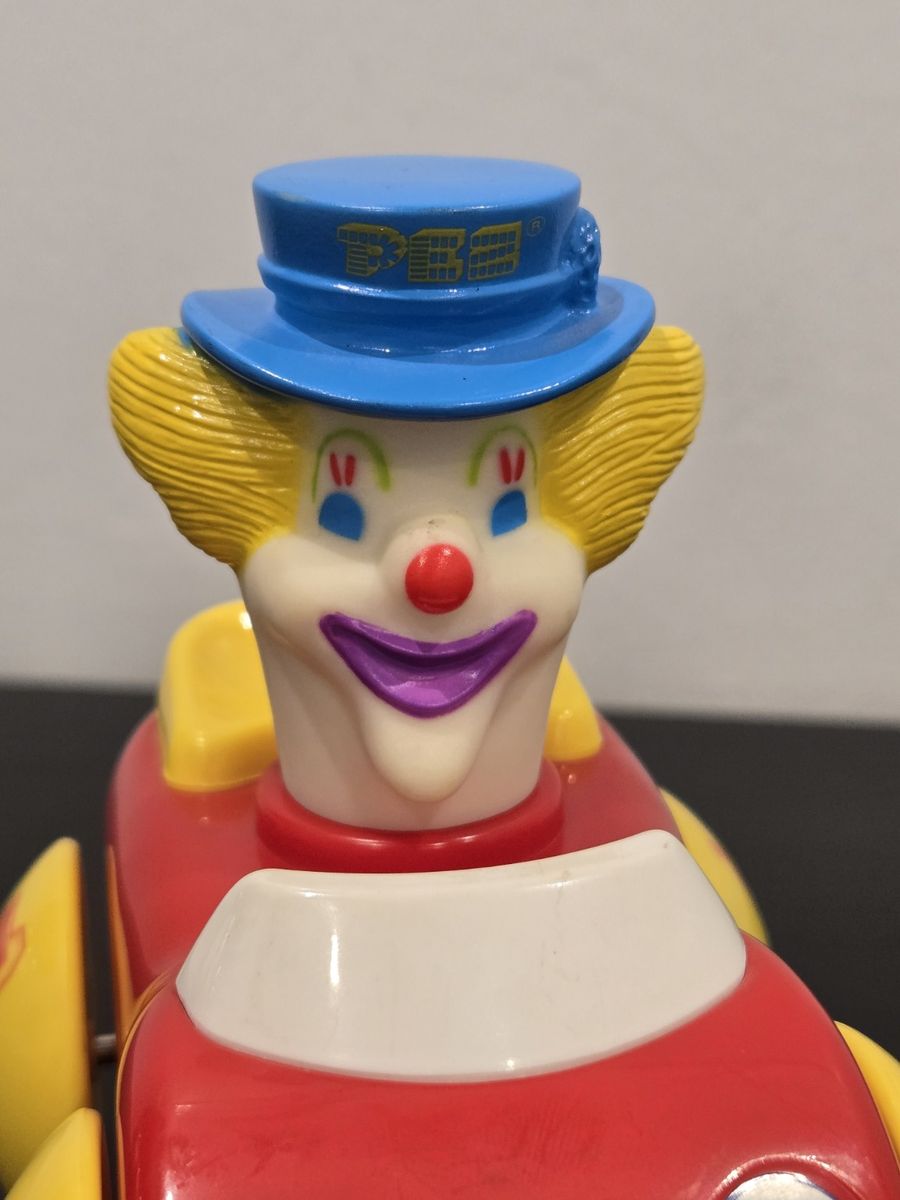 Colorful PEZ clown car toy with classic clown design. Great for display, kids, or PEZ collectors.