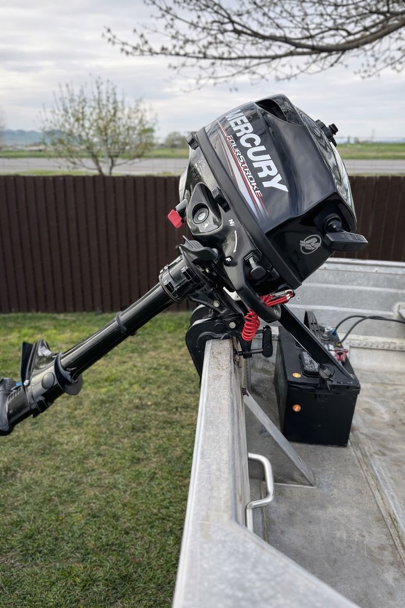 14’ aluminum fishing boat Mercury 2.5hp outboard gas motor Minn Kota 55lb thrust trolling motor Deep cycle marine battery Trailer included Everything works, no leaks OBO