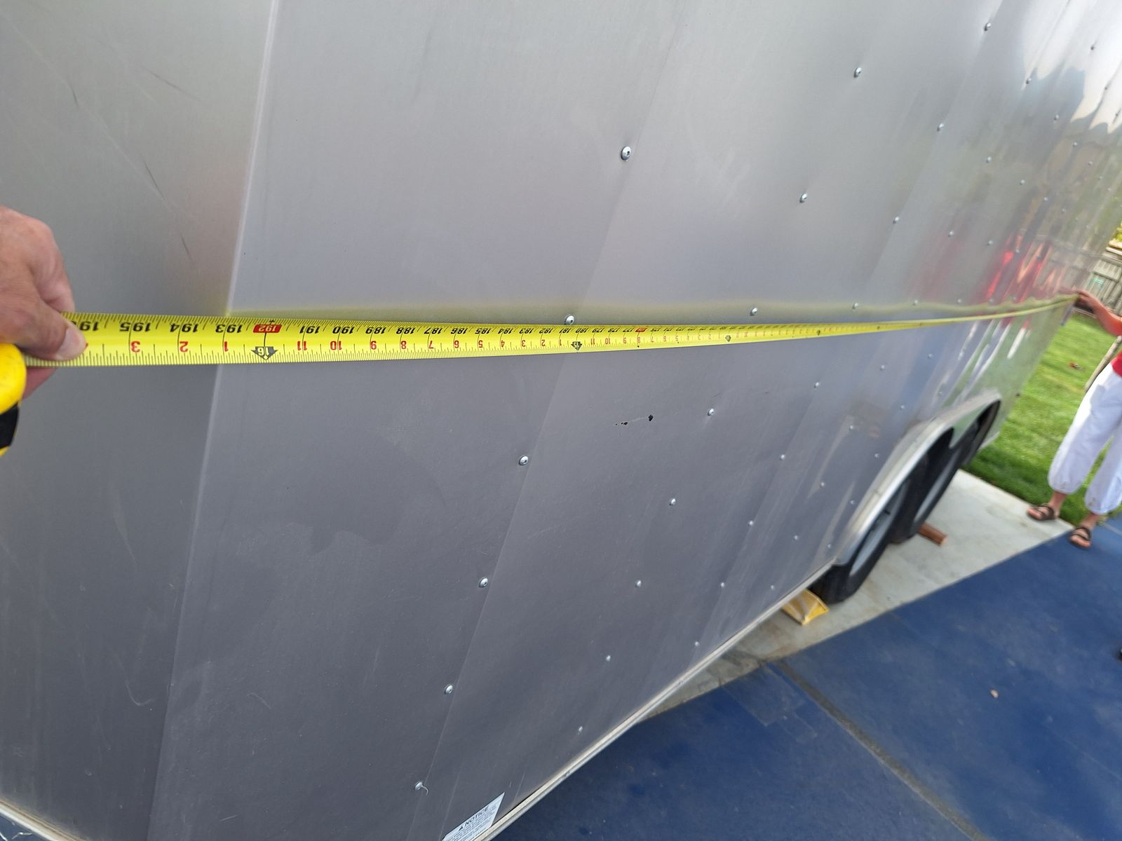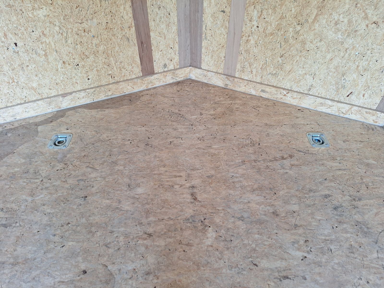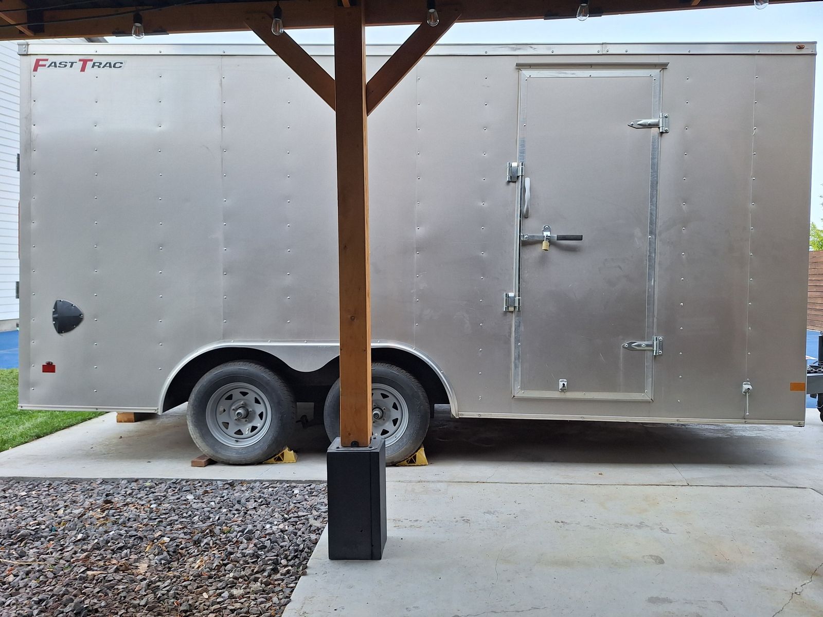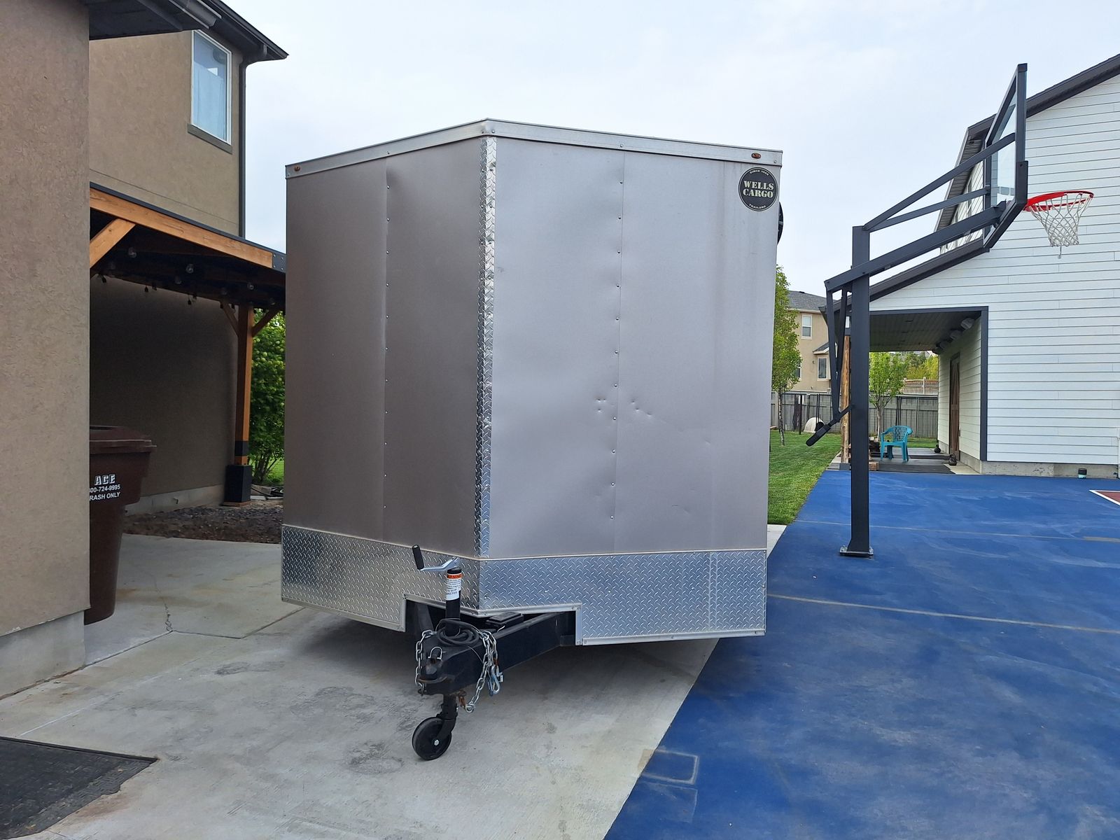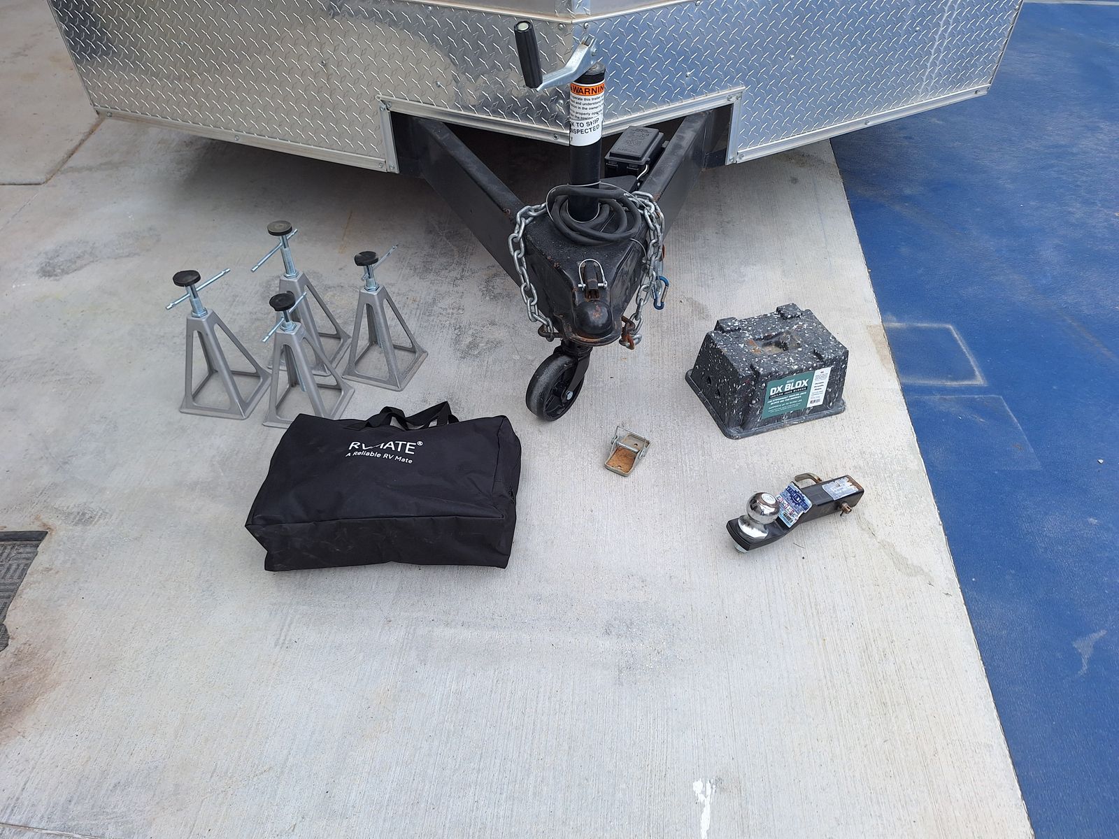 Includes; Spring assist rear ramp. Internal tie downs on the floor. Internal battery powered lights. Foot and wheel attachments for the tongue. Four jack stands and a jack box. Wheel covers and wheel chocks. Hitch with 2 5/16 ball.