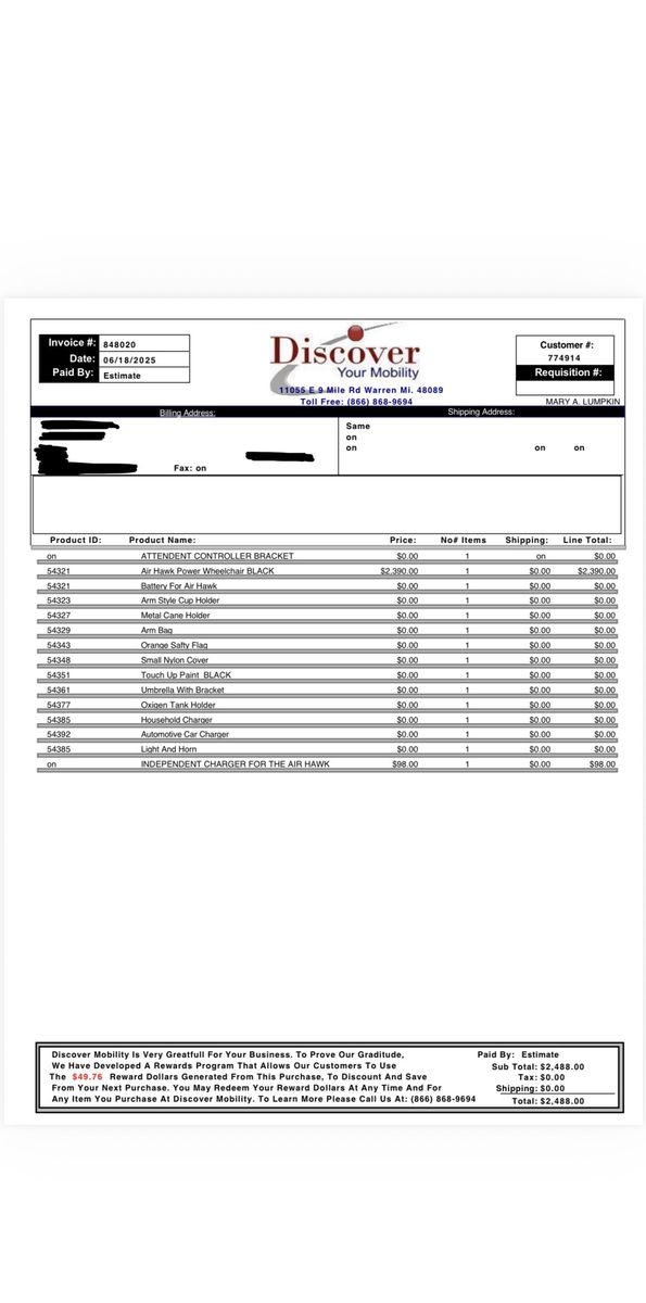 VenmoAir Hawk Power Wheelchair from Discover Your Mobility. Only used for a couple of months and in perfect condition.
