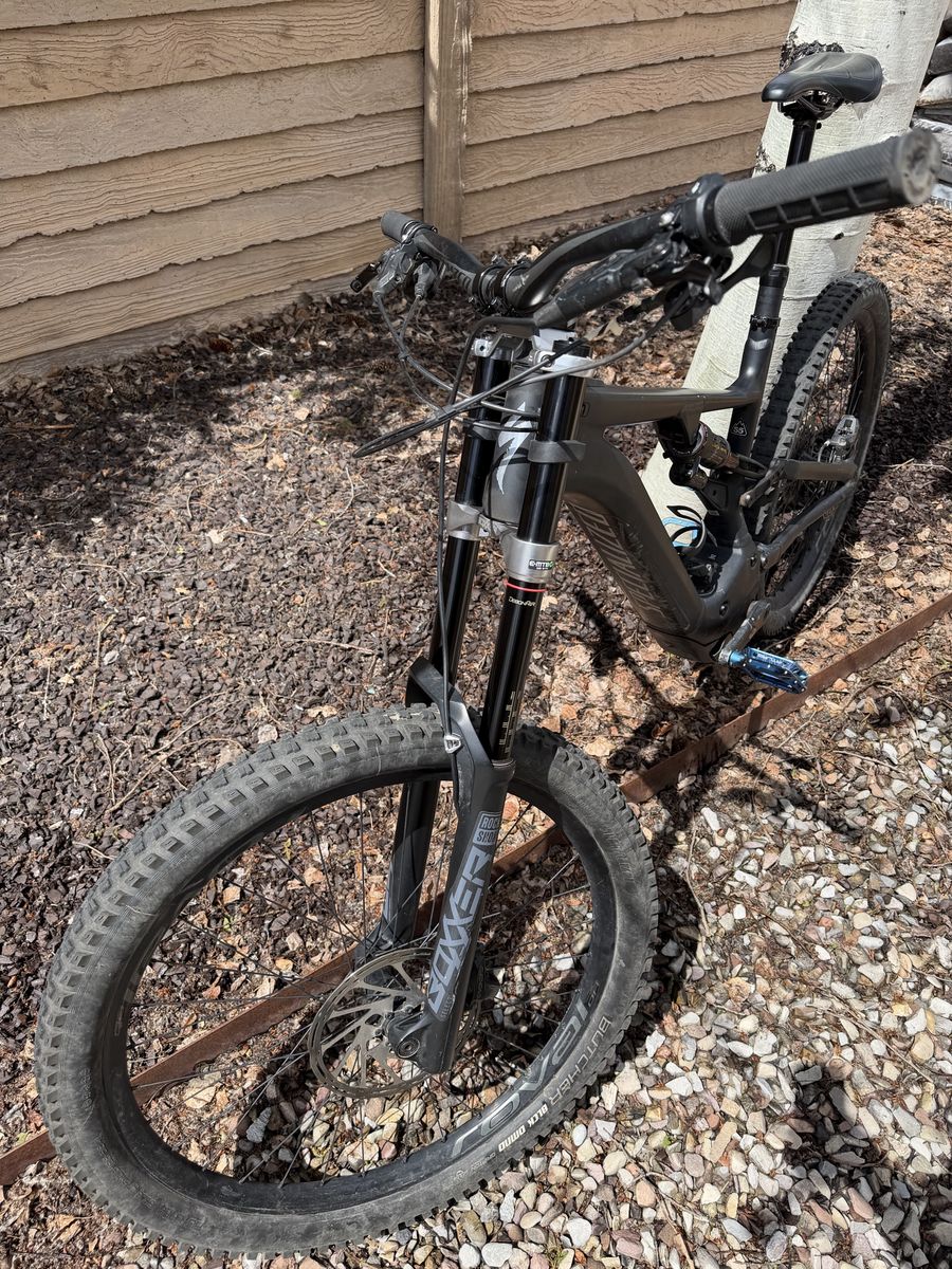 VenmoSize S5 (XL) 600 miles, 24 charge cycles, 100% battery health Rockshox Boxxer fork and super deluxe ultimate shock Bike runs strong and crushes uphill and downhill Small dent on side of downtube as pictured but it doesn’t affect battery removal or ride quality