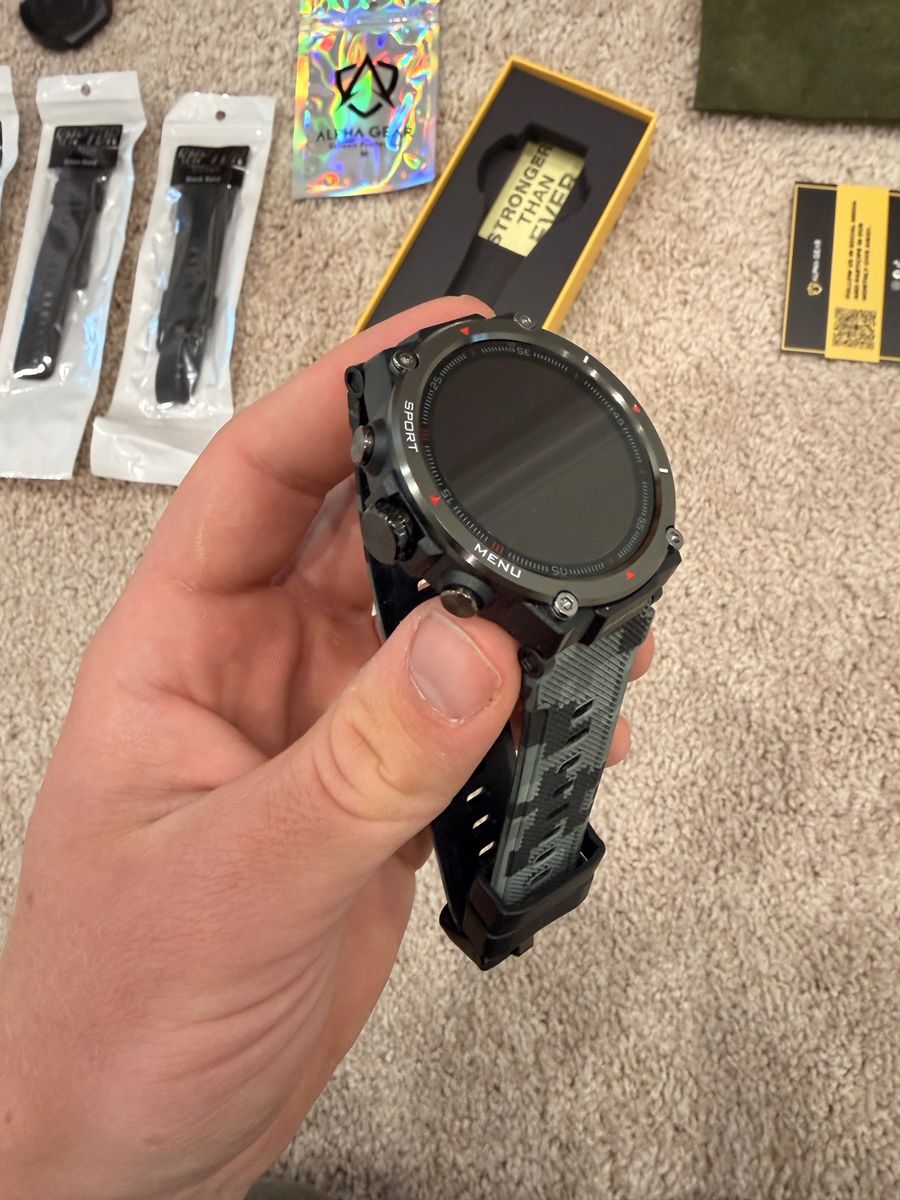 VenmoRaptor Watch Alpha Gear (smartwatch) Brand new. Never been used. I got a different watch and never used this one. Comes with 4 watch bands and screen protector. Comes with charger and bag. Very nice quality. Normally $190. Asking $100